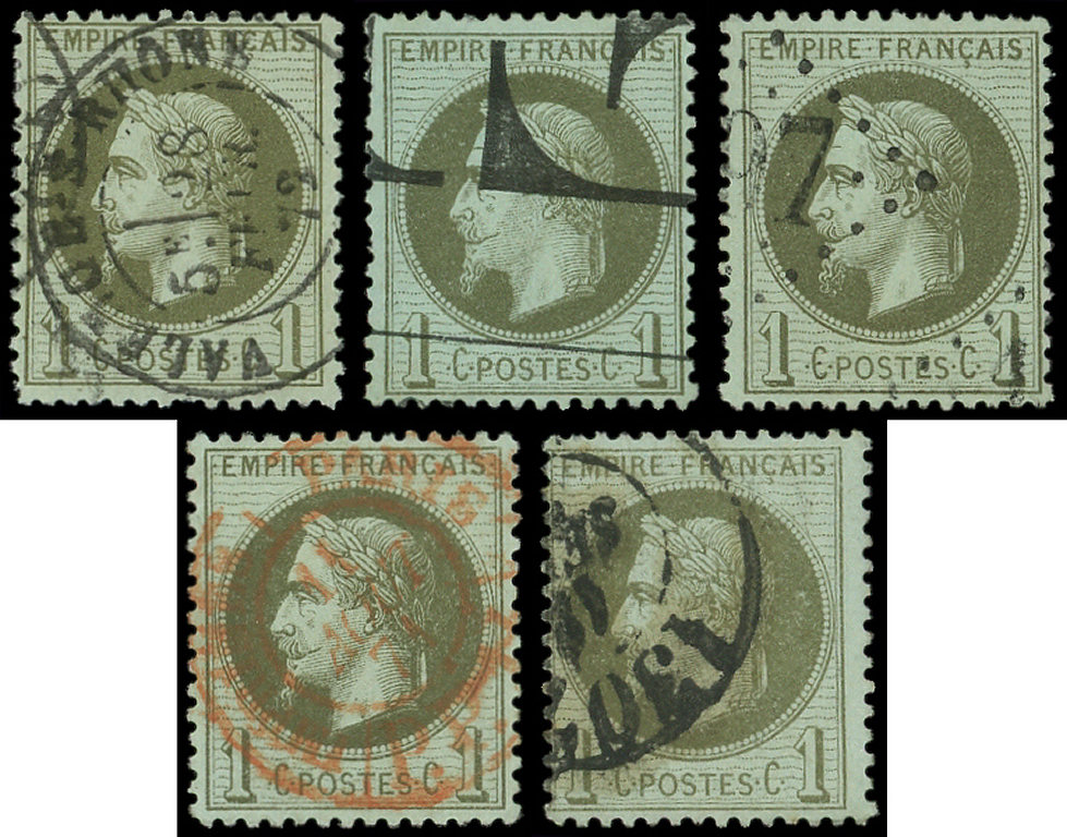 vert-bronze, 5 ex. obl. Typo, càd T17, càd rouge, GC et Bureau de Passe, TB (Image)
