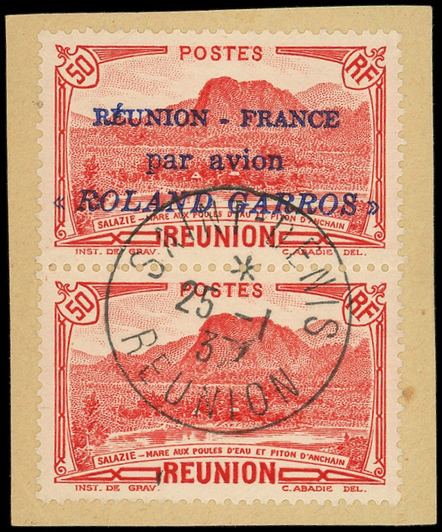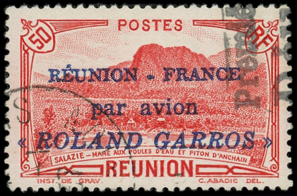 rouge, Roland Garros, TENANT A NON SURCHARGE, obl. St DENIS 25/1/37 sur fragt, frappe superbe (Image)