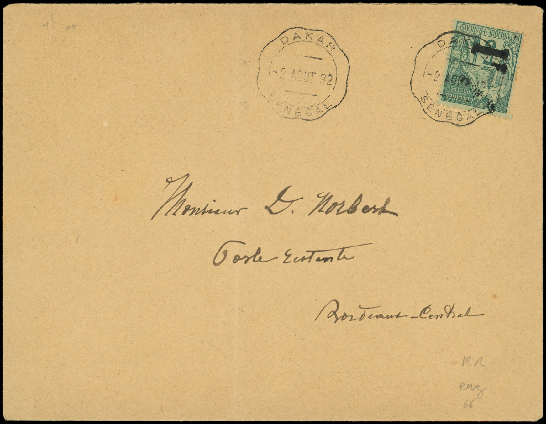 vert obl. càd ondulé DAKAR SENEGAL 2/8/92, seul s. Env., TB (Image) (Image2)