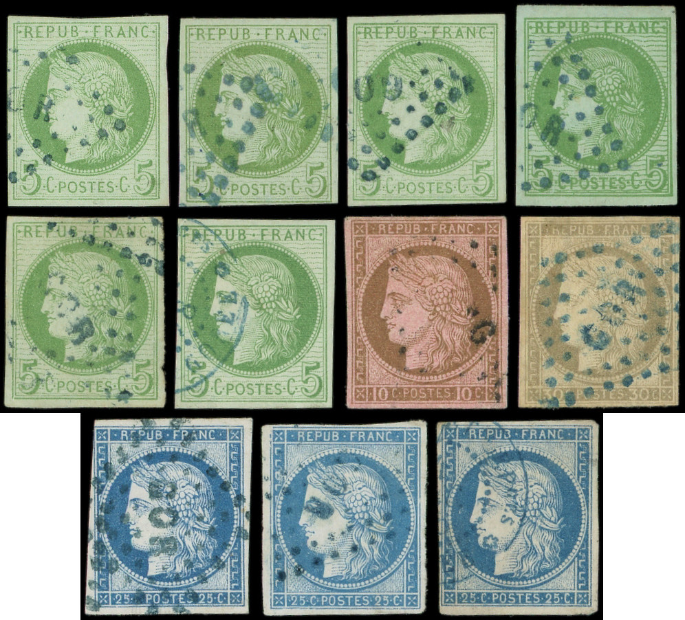 20, 23 (3), Cérès, ensemble de 11 t. obl. Los. GOR bleu ou noir, TB (Image)