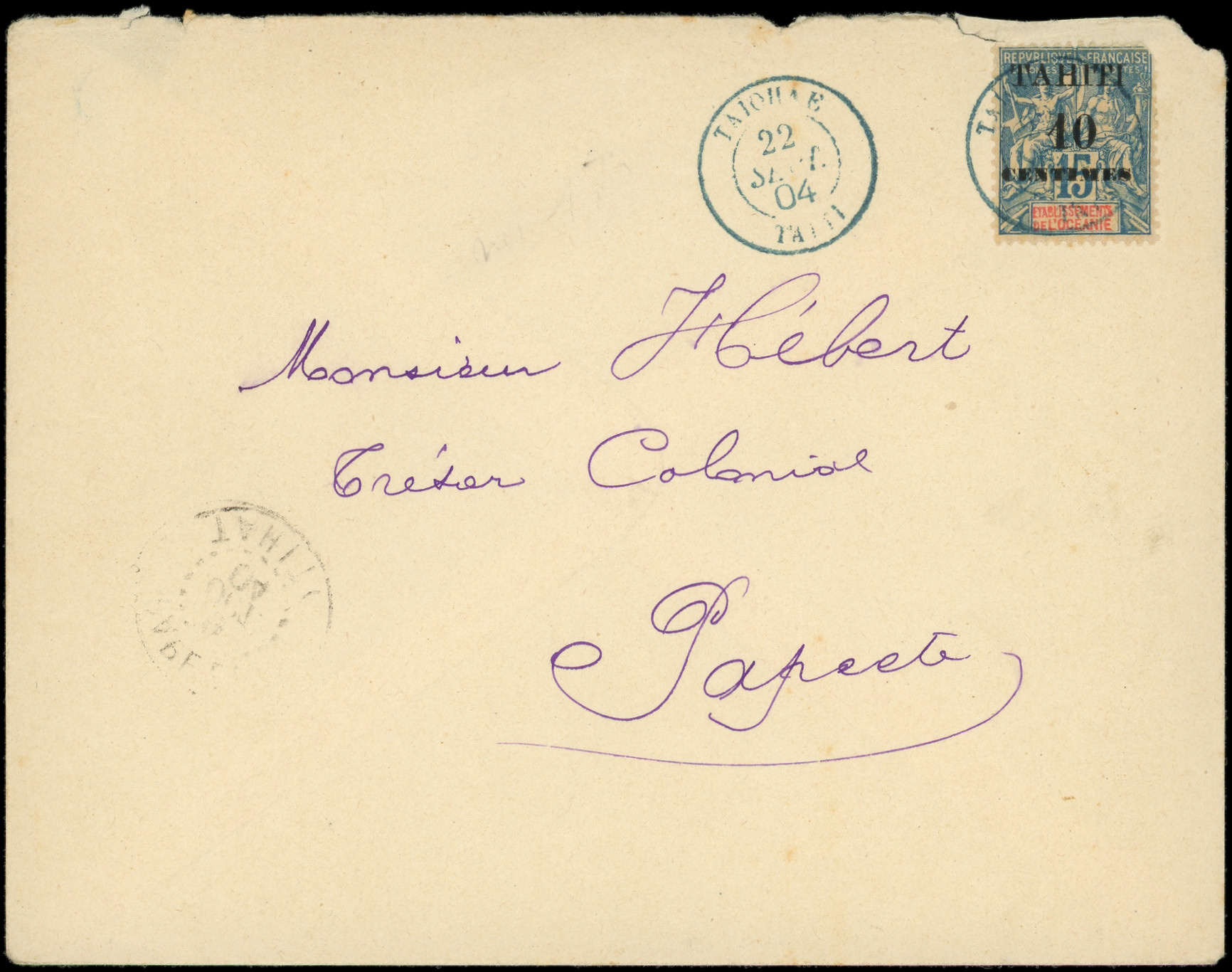 15c. bleu, un angle arrondi, obl. càd TAIOHAE TAITI 22/9/04 s. Env., arr. Papeete 9/10, frappe TTB (Image)