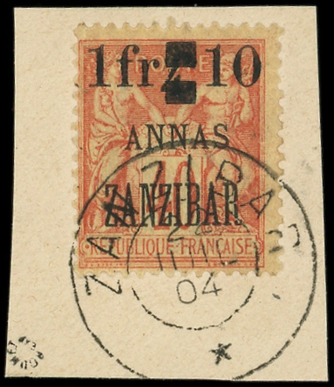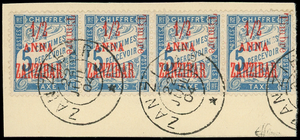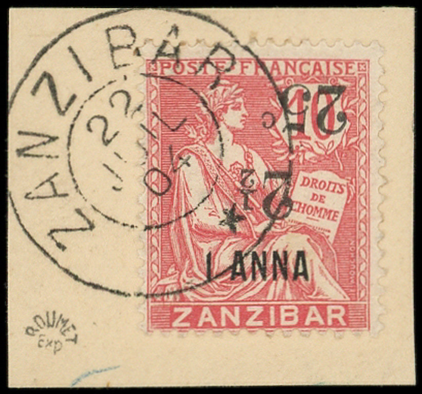 1/2 s. 1a. s. 10c. rose, surch. à éléments RENVERSES, obl. s. fragt, TB (Image)