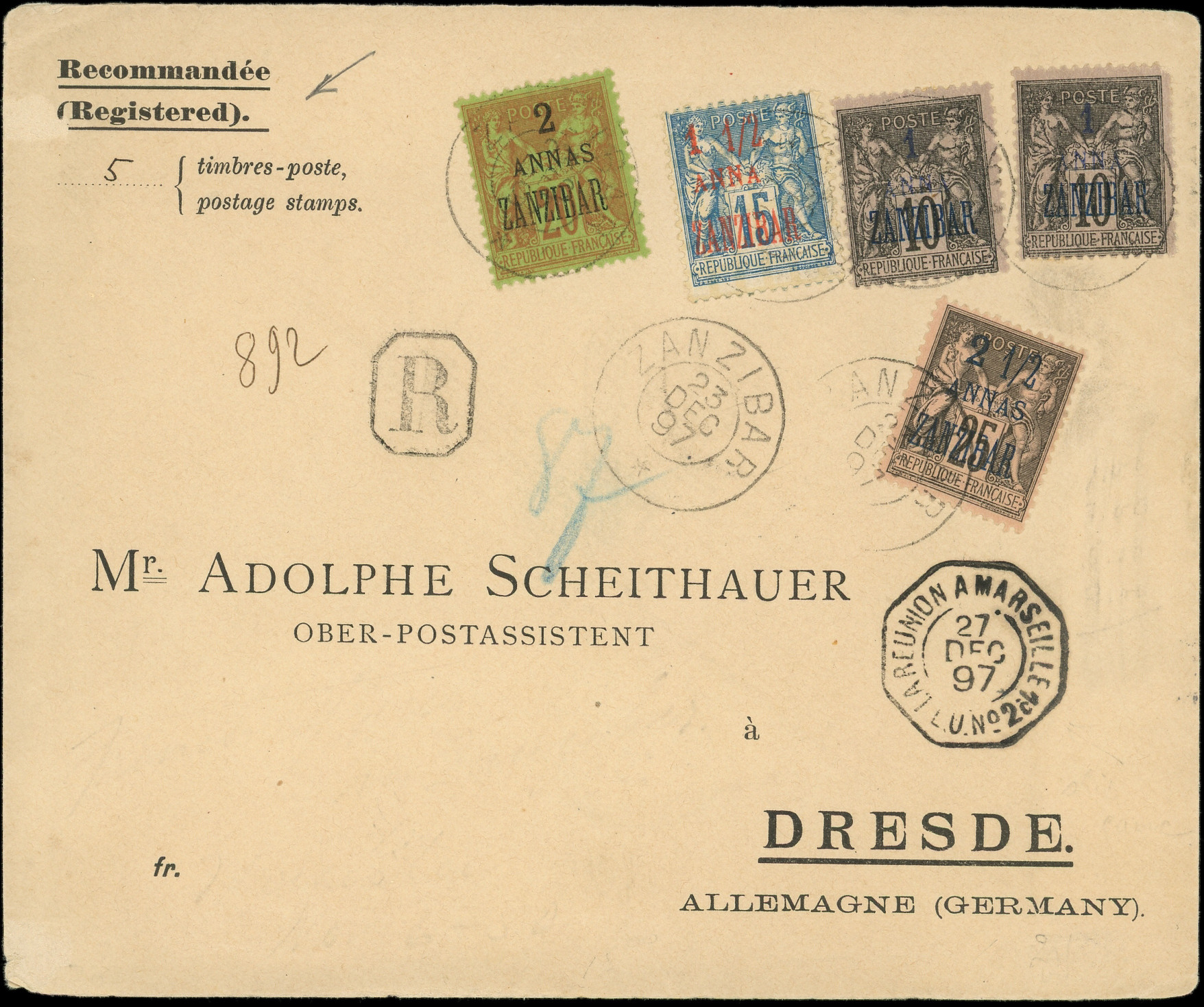 24 obl. càd ZANZIBAR 23/12/97 s. Env. Rec., arr. DRESDEN 16/1, TB (Image)