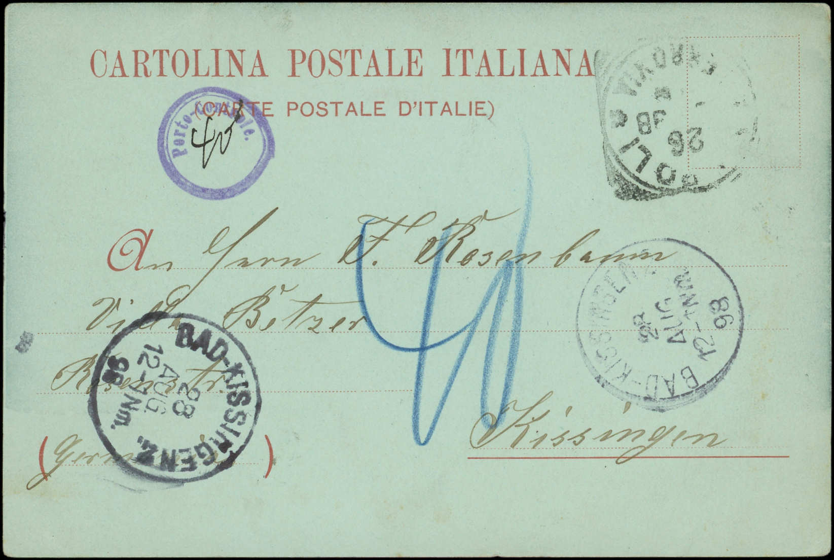 KISSINGEN 28/8/98 s. CP de NAPOLI non affranchie, TB (Image)