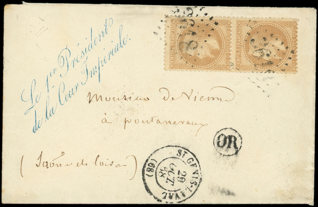 PAIRE obl. GC 3618 s. Env., càd T15 ST GENIS LAVAL 29/10/68 et griffe "LE 1er PRESIDENT/DE LA COUR IMPERIALE", TB (Image)