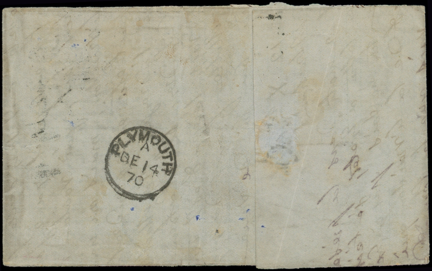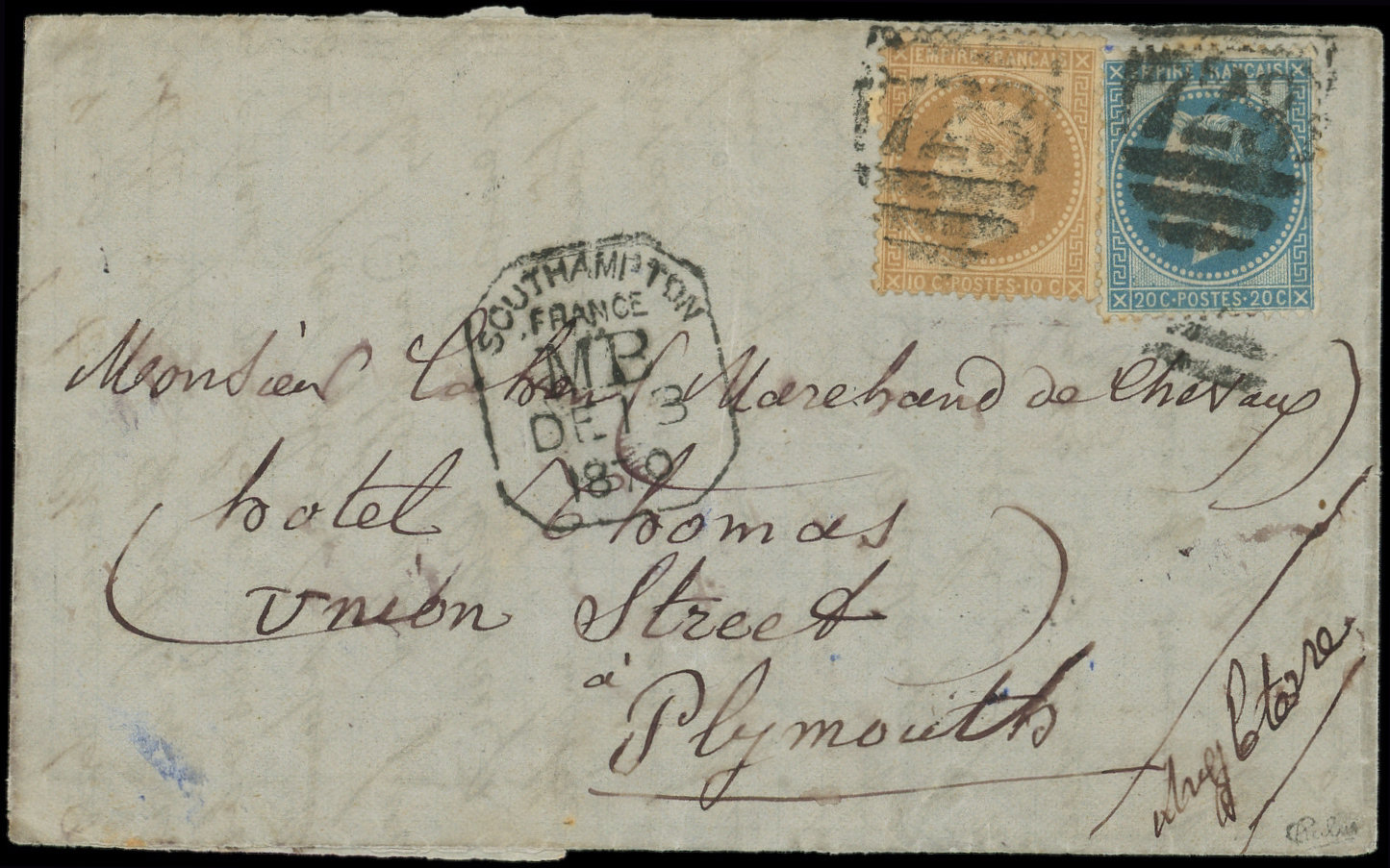 II et 20c. T II obl. GC ANGLAIS 723 s. LAC partielle, càd SOUTHAMPTON FRANCE 13/12/70, arr. PLYMOUTH 14/12, frappes TTB, certif. Calves (Image) (Image2)