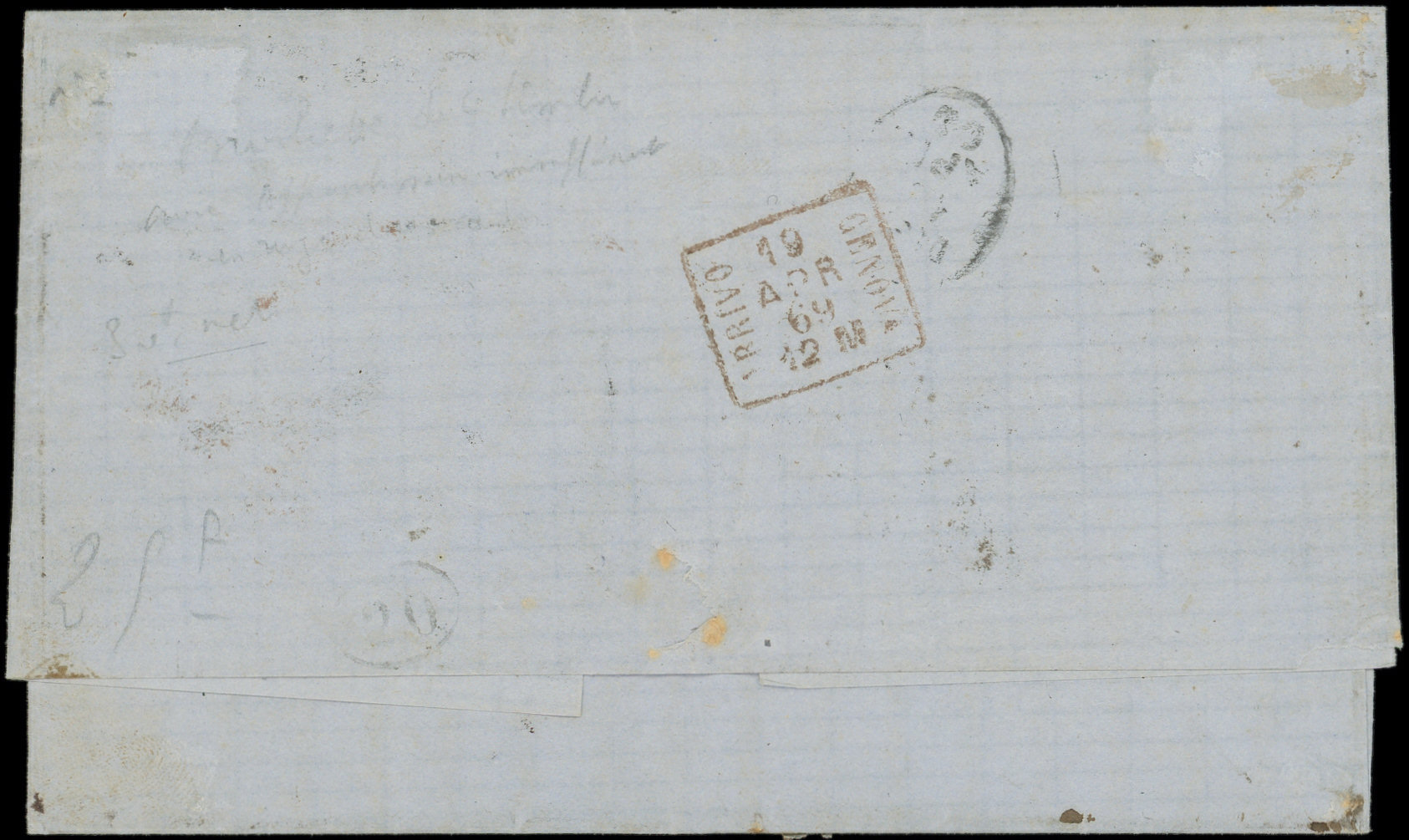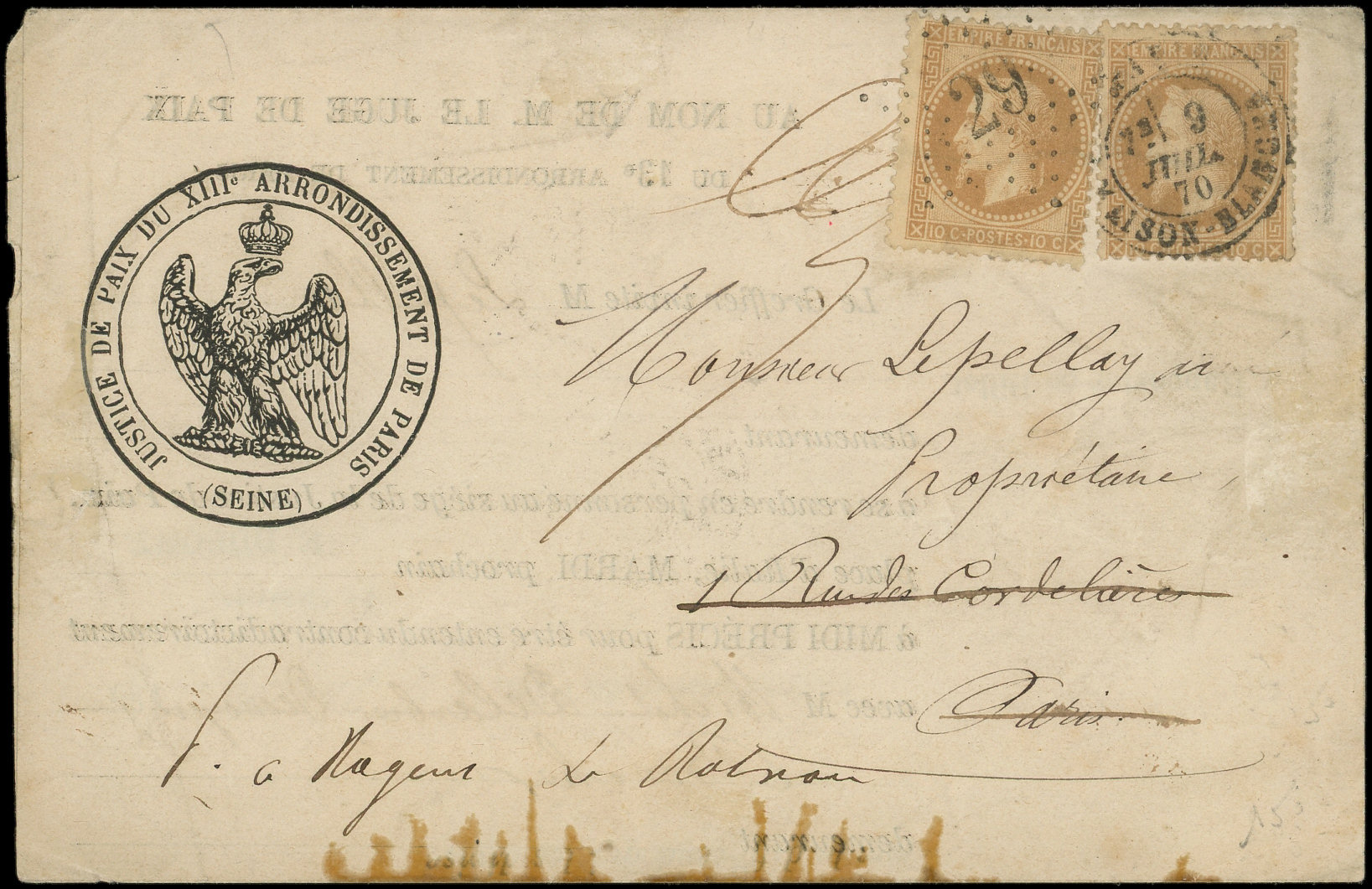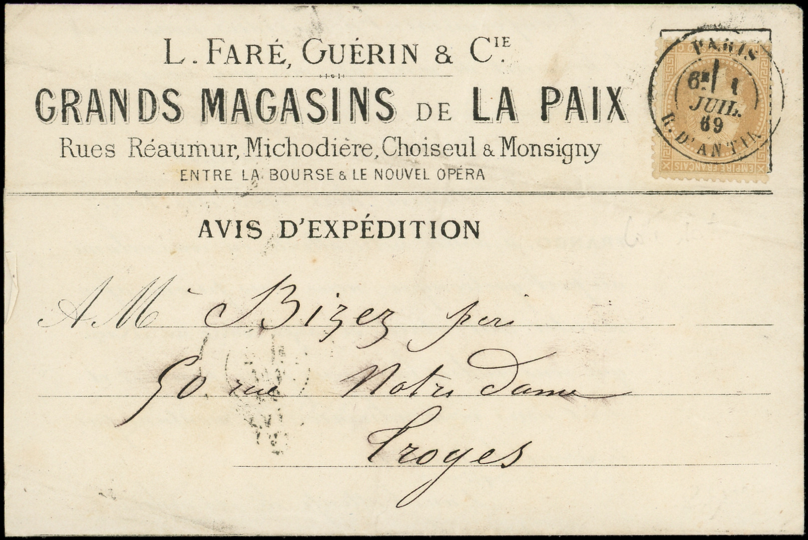 T II, obl. càd R. d'Antin 1/7/69 s. Imprimé Grands Magasins de la Paix, arr. TROYES, TTB (Image)