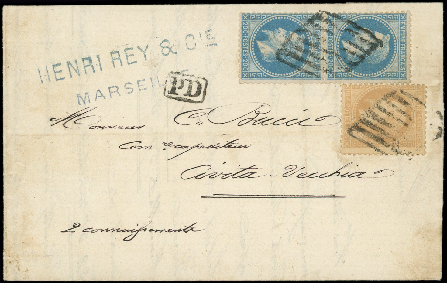 et 20c. PAIRE obl. GRILLE de CIVITA VECCHIA s. LAC de Marseille 8/8/70, arr. 10/8, Superbe (Image) (Image2)