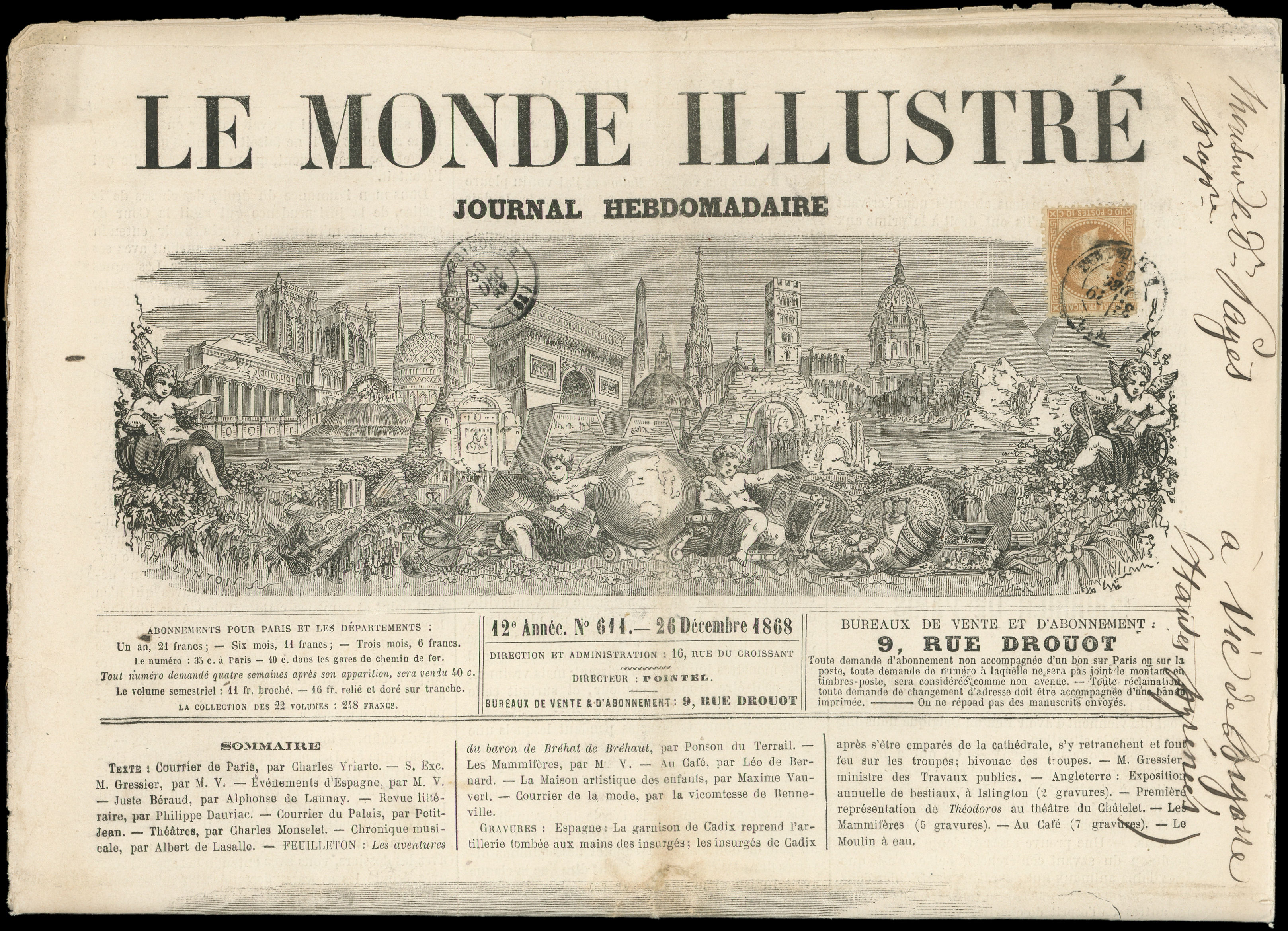obl. càd PARIS 30/12/68 s. Journal entier LE MONDE ILLUSTRE du 26/12 pour VIC de BIGORRE, superbes illustrations en 1ère page et à l'intérieur, TB (Image) (Image2)
