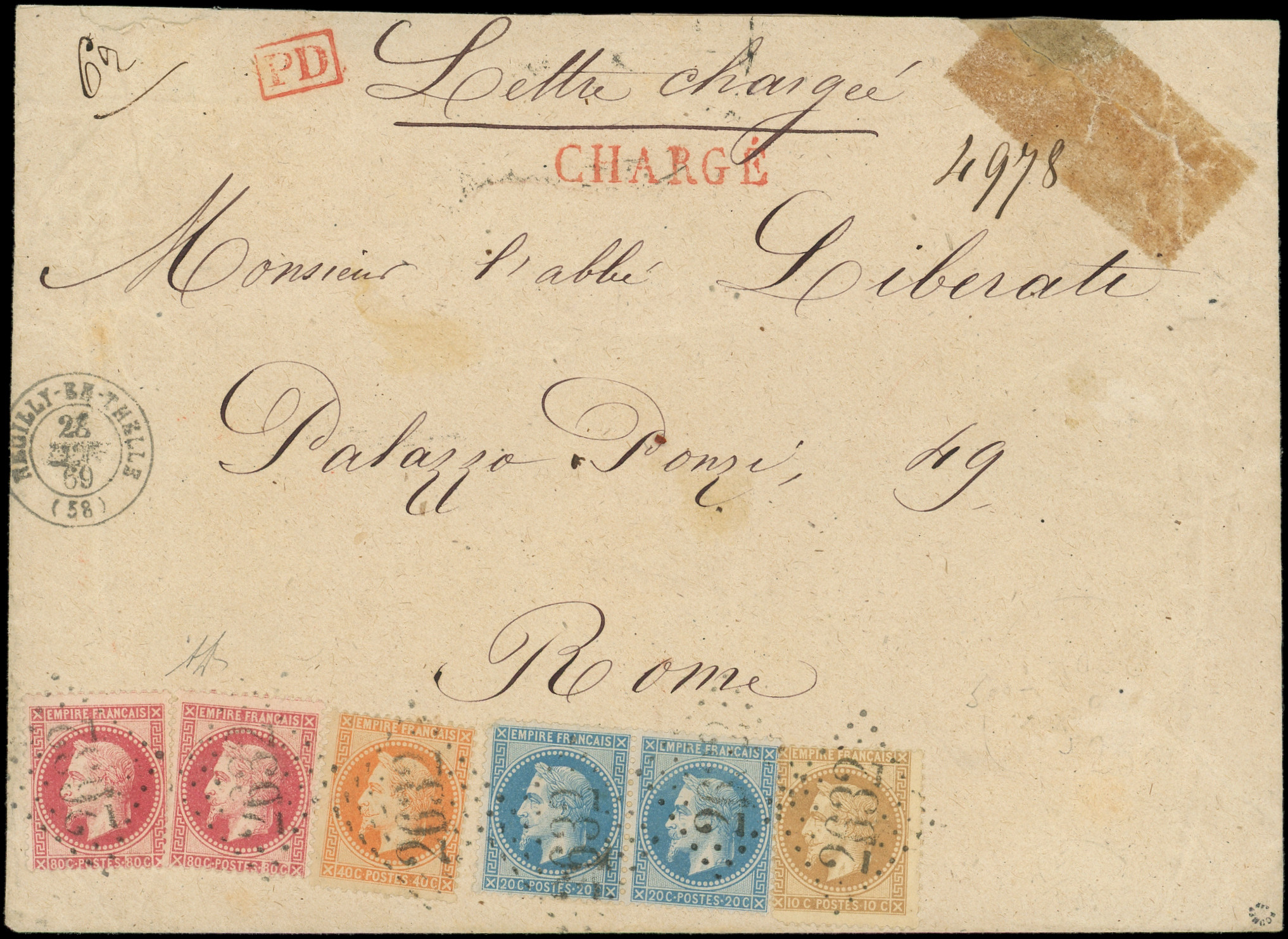 et 32 (2) obl. GC 2632 s. Env. CHARGE, càd T15 NEUILLY-EN-THELLE 26/1/69, arr. ROMA 1/2, RR QUADRICOLORE de la même émission, TB (Image) (Image2)
