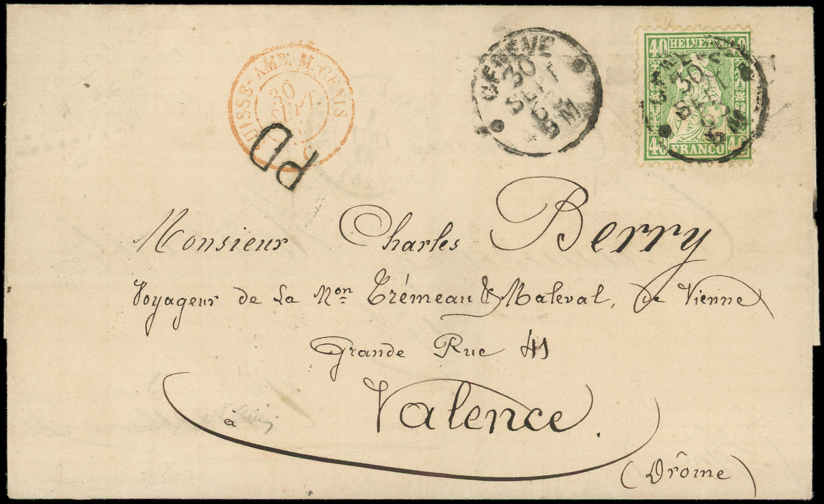 obl. càd GENEVE 30/9/62 s. LSC, càd rouge SUISSE-AMB.M.CENIS, réutilisée avec N°22 de France obl. GC 4077 de VALENCE 1/10, TB (Image) (Image2)