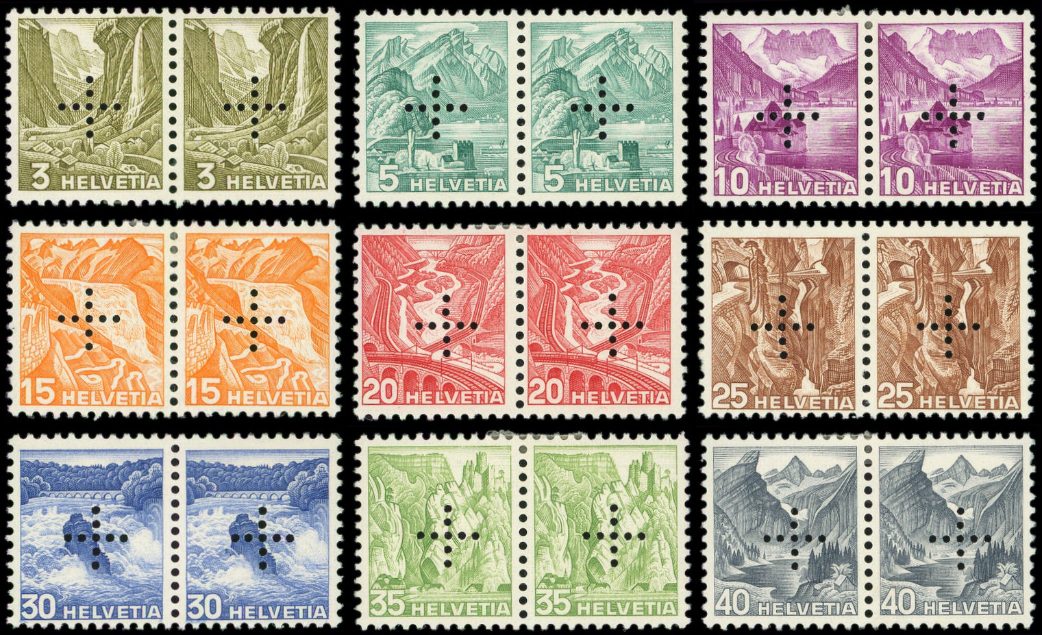 (timbres de 1936 en paires) avec perforation en croix, TB (Image)