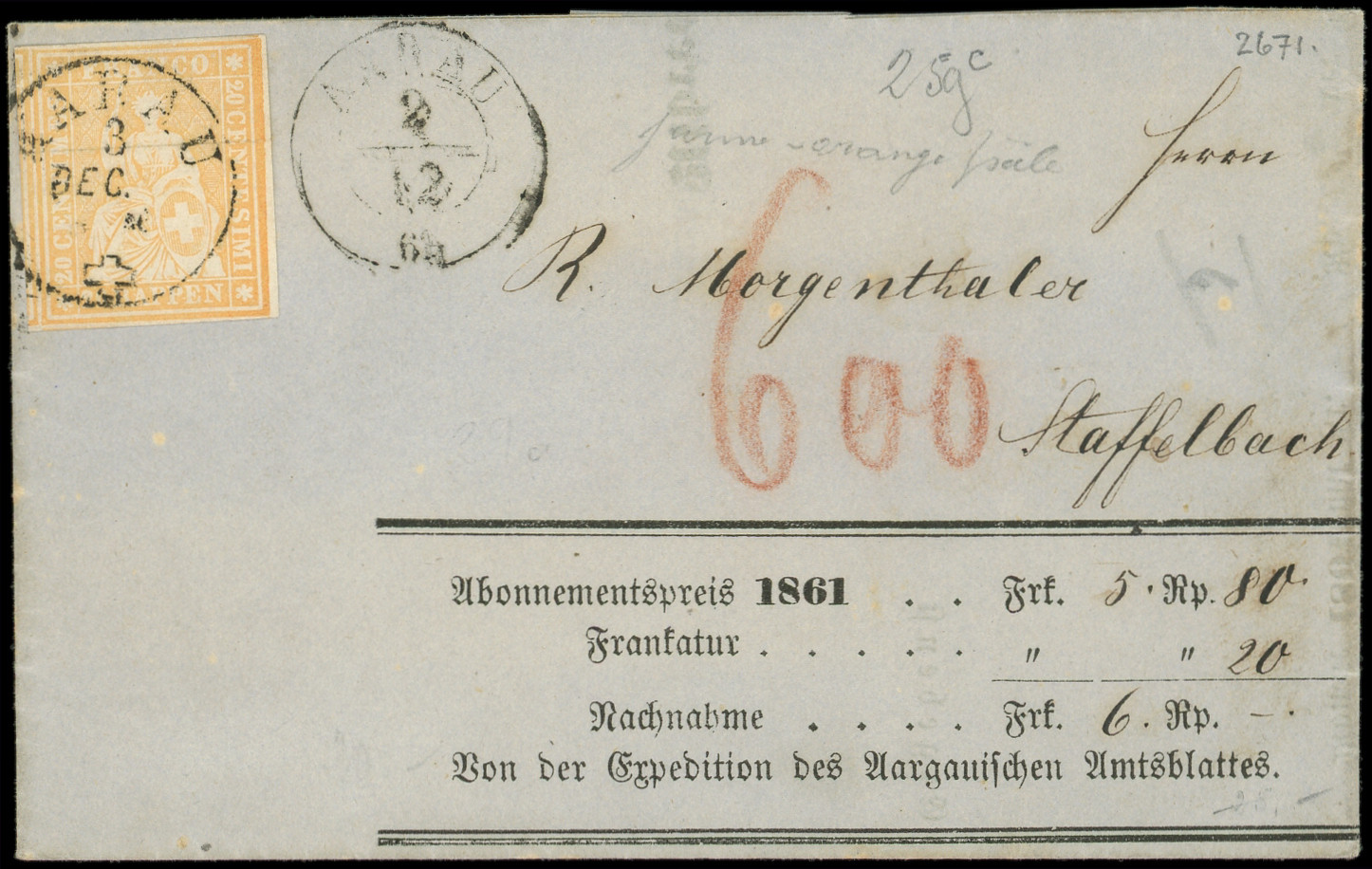 jaune-orange pâle, papier moyen, obl. càd AARAU seul s. LAC, TB (Image)