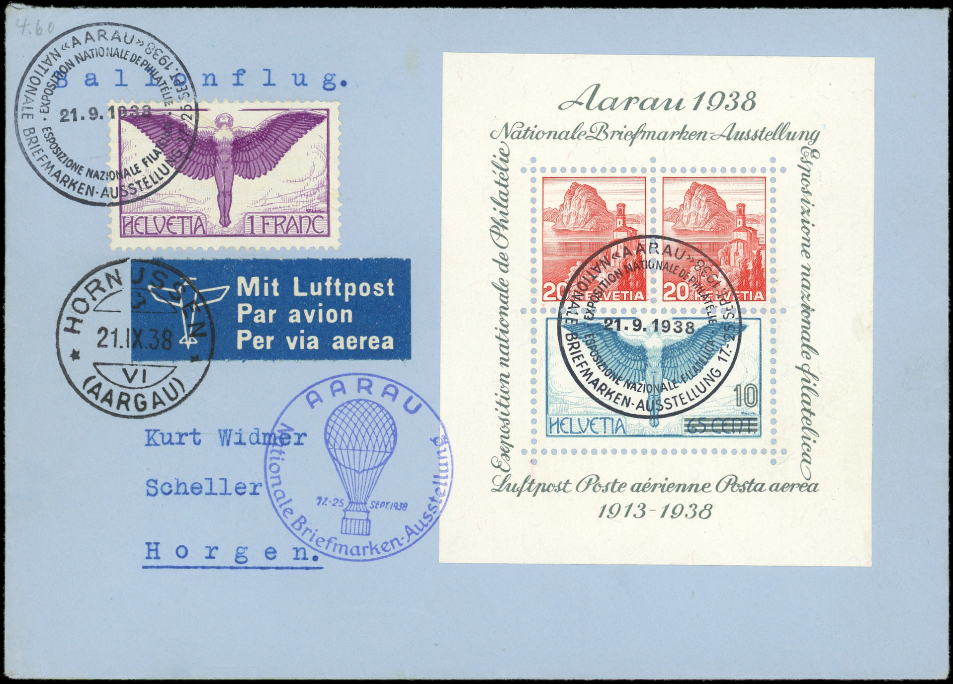 et PA 12 obl. Expo Nationale Aarau 21/9/38 s. Env., TB (Image)