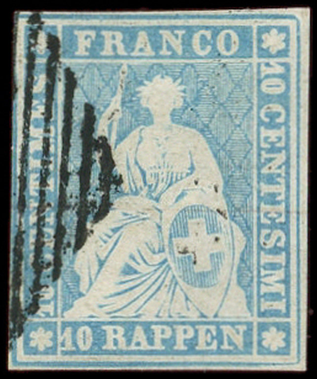 27c : 10r. bleu