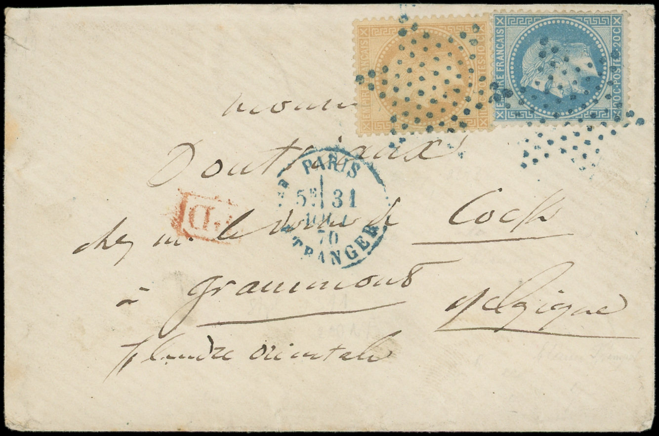 et 20c. obl. ETOILE BLEUE s. Env., càd BLEU PARIS ETRANGER 31/8/70, arr. GRAMMONT Belgique 1/9, Superbe (Image) (Image2)