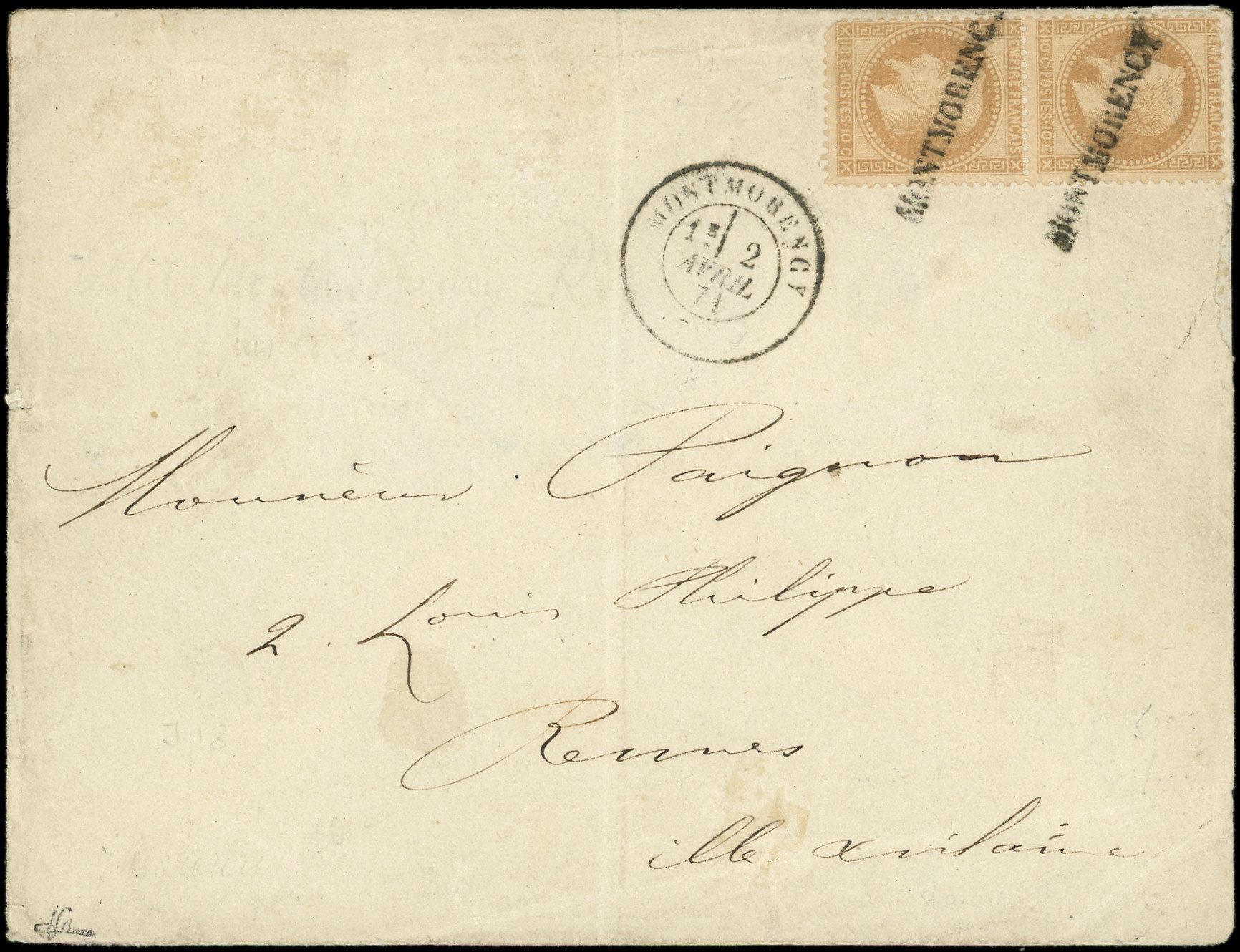 II, PAIRE obl. de la griffe MONTMORENCY s. Env., càd T17 MONTMORENCY 2/4/71, RR et TTB (Image) (Image2)