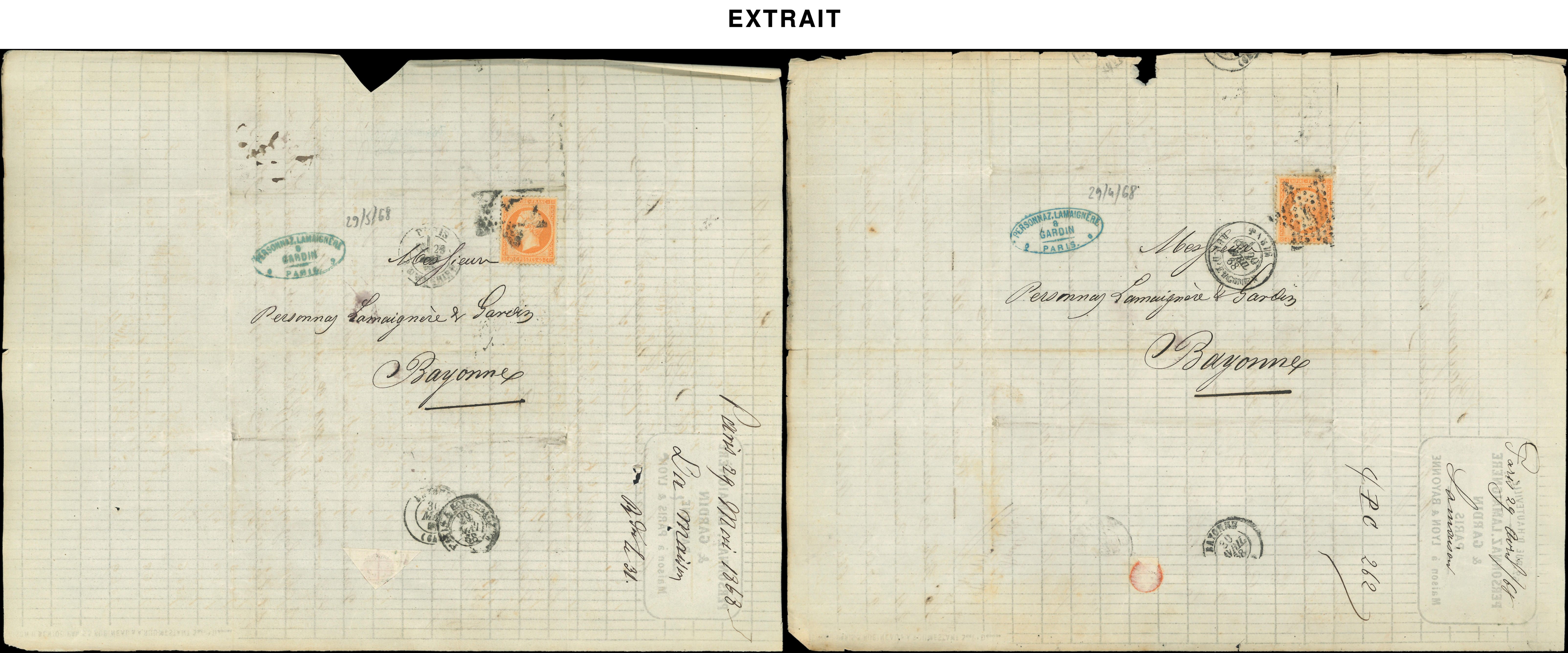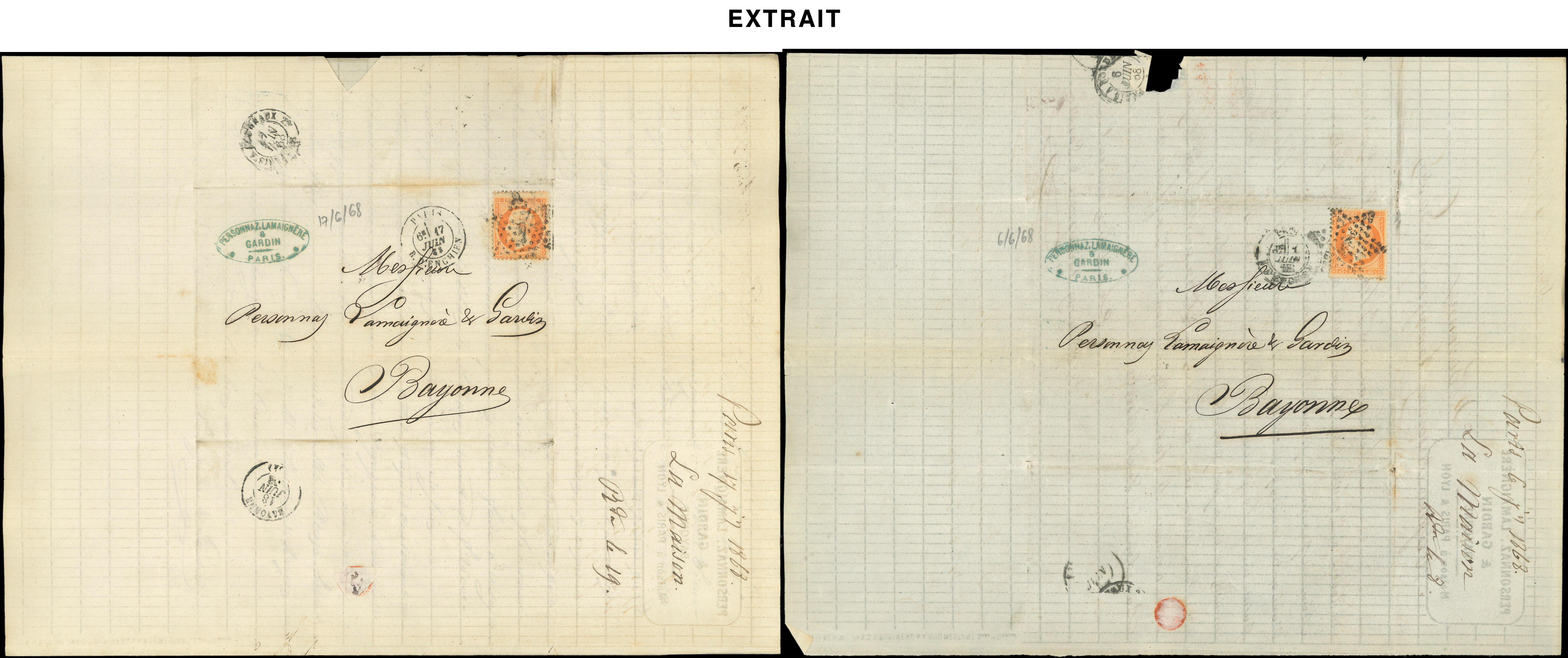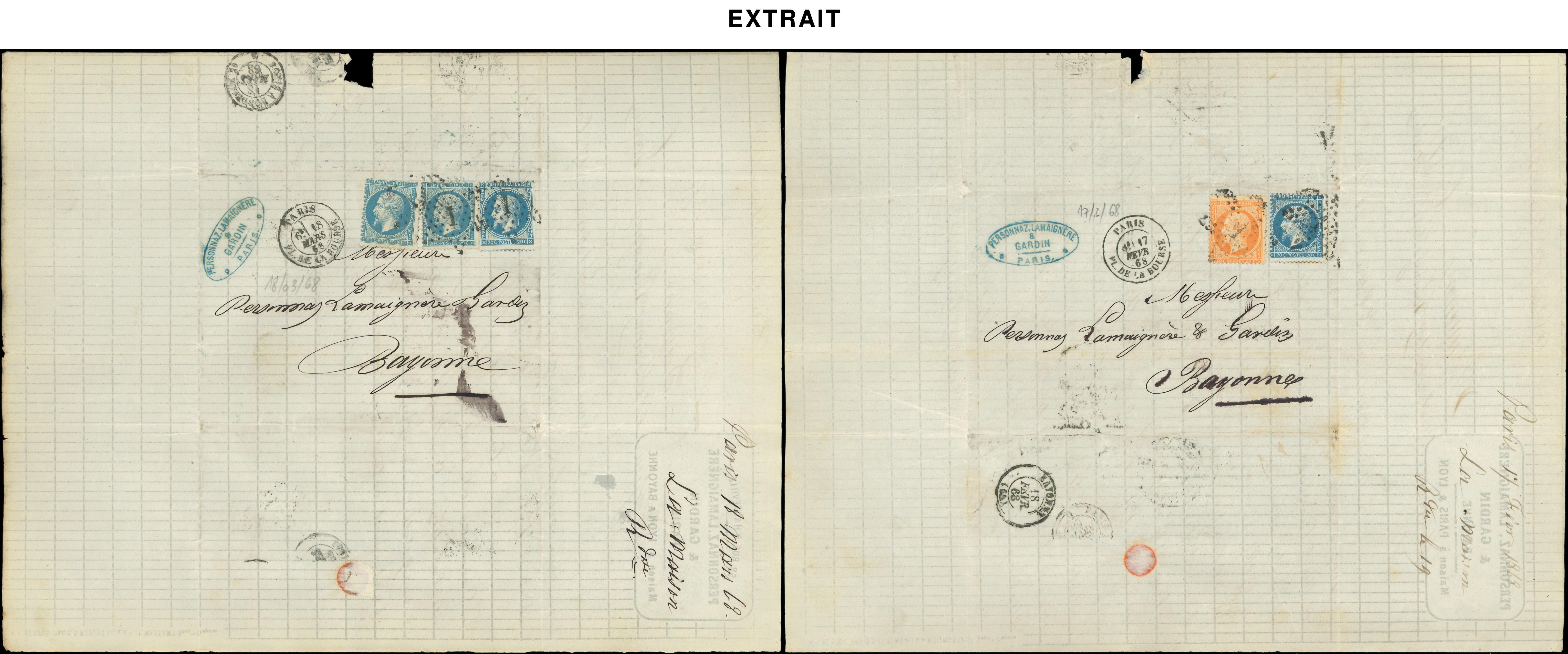 de 170 lettres de Paris pour Bayonne entre le 2/1/68 et le 28/12/68, variétés de découpe et raccord, intéressant (Image) (Image2)