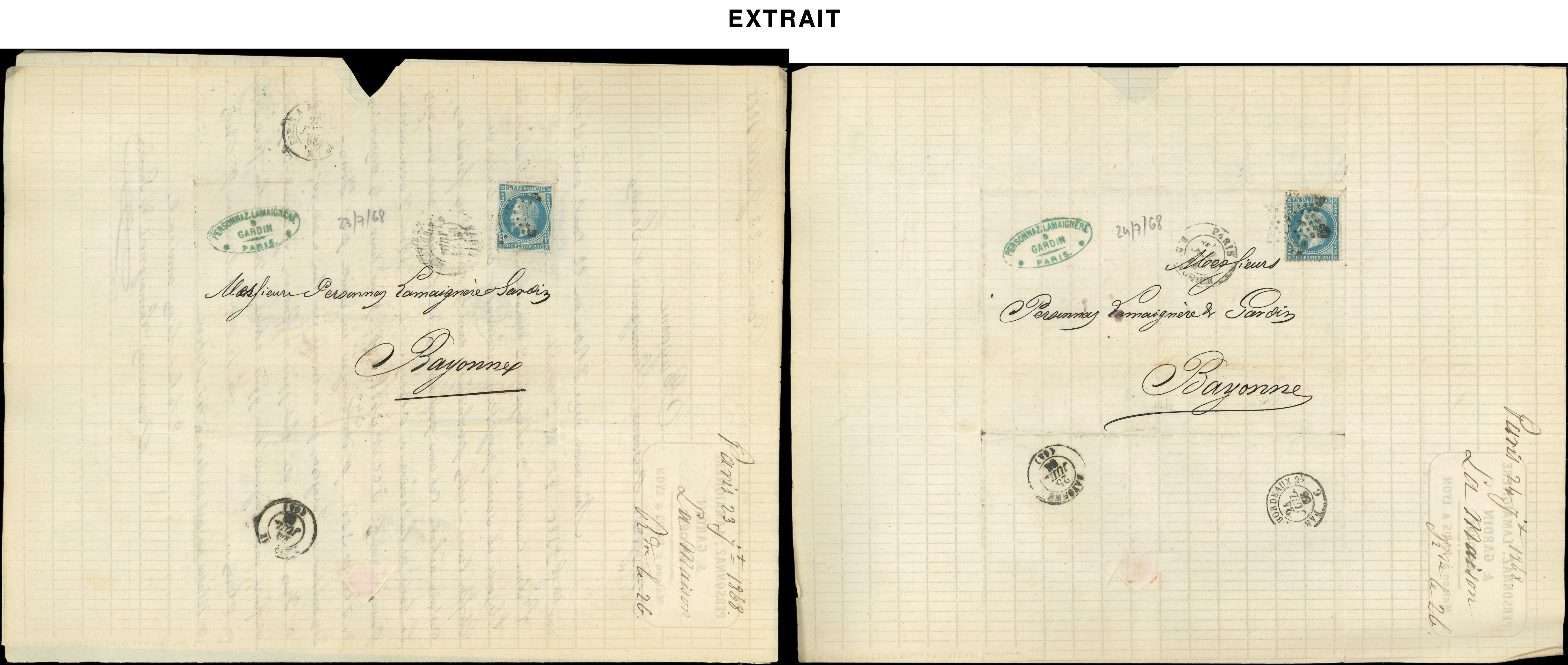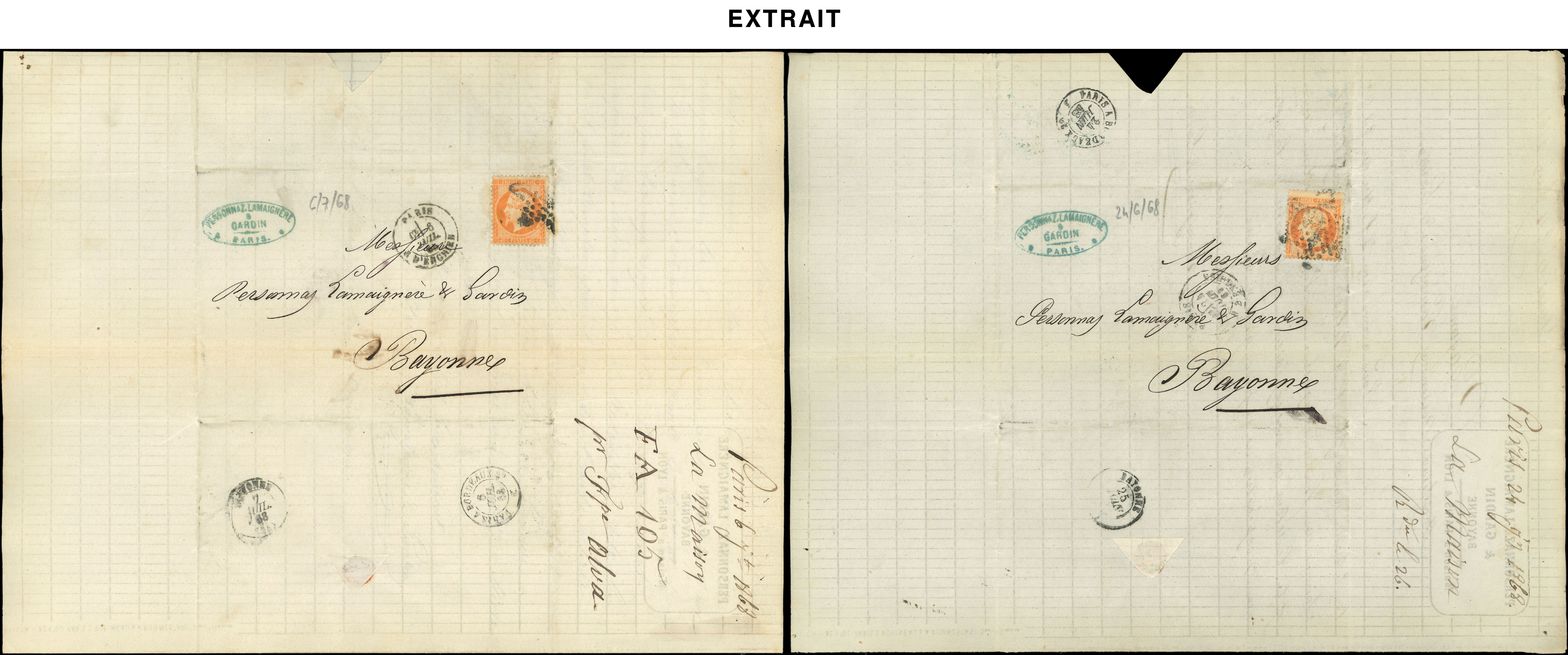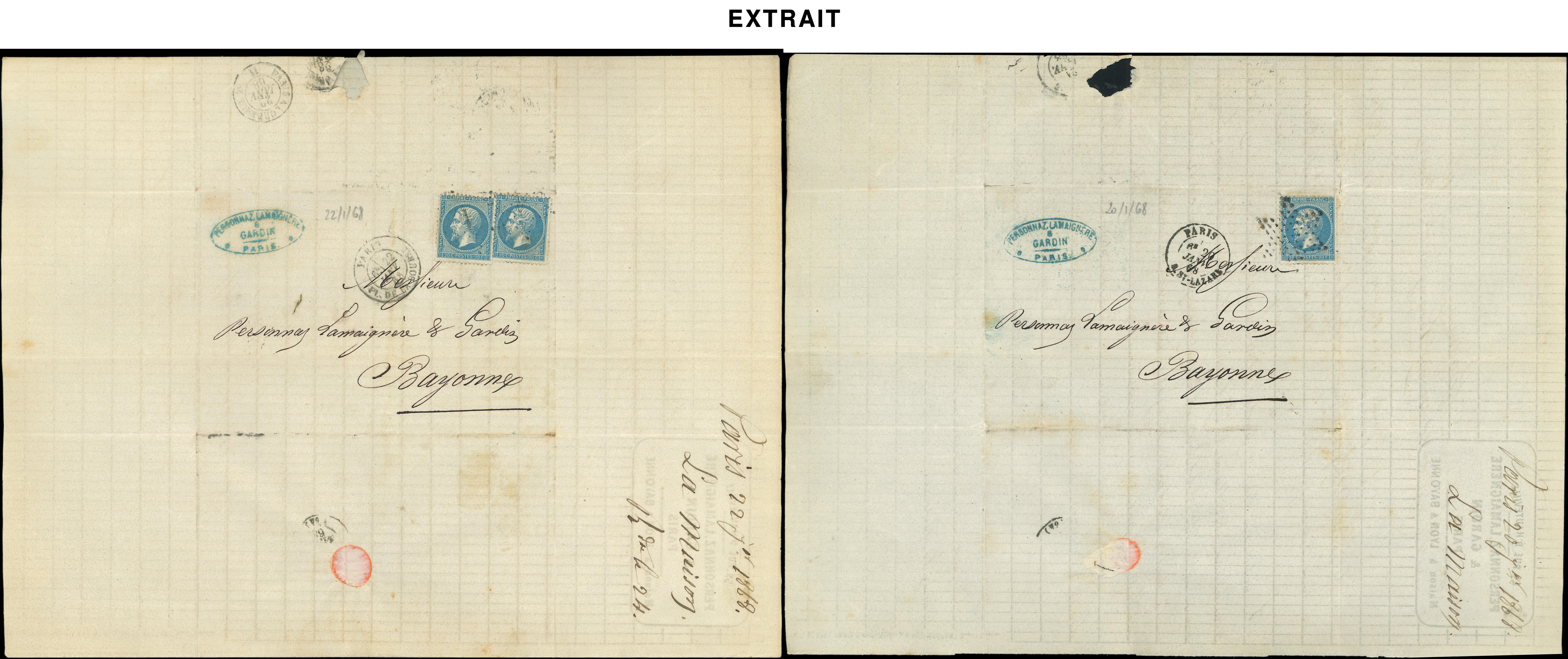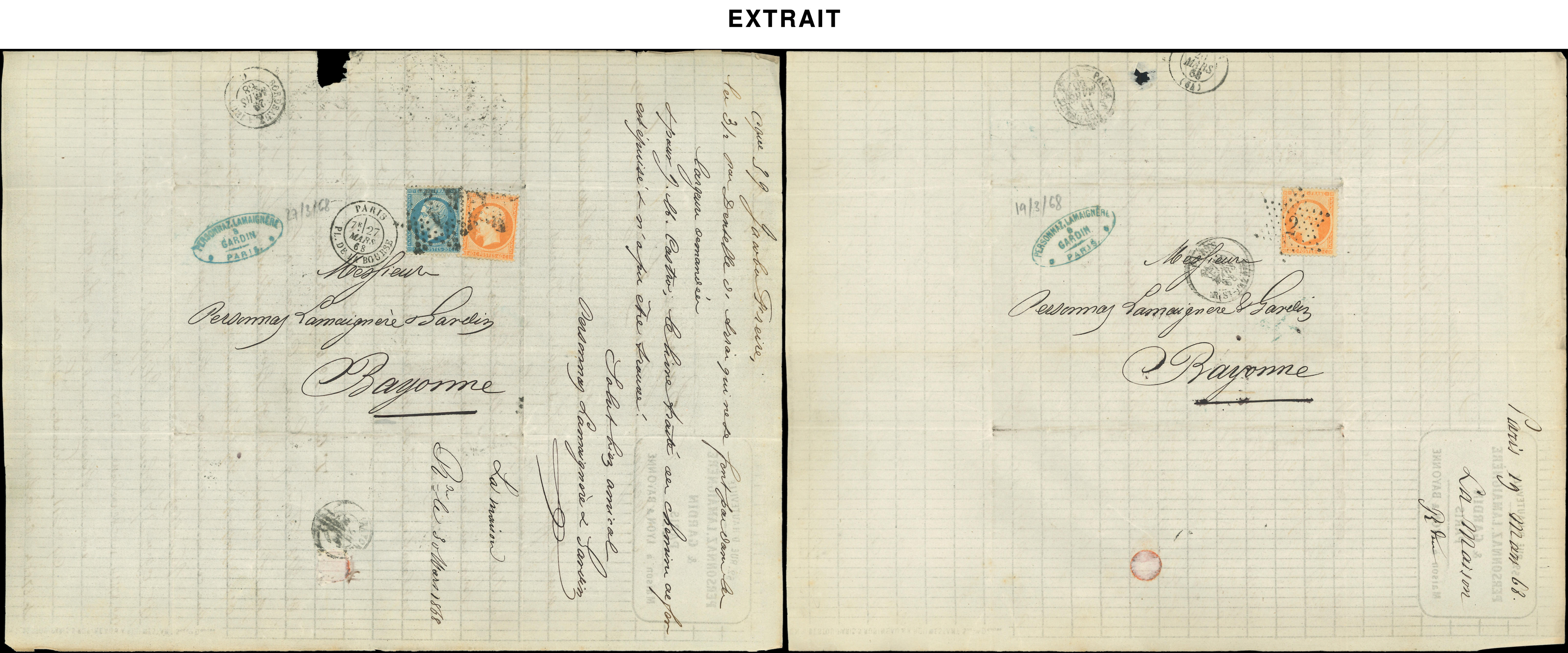 de 170 lettres de Paris pour Bayonne entre le 2/1/68 et le 28/12/68, variétés de découpe et raccord, intéressant (Image) (Image2)