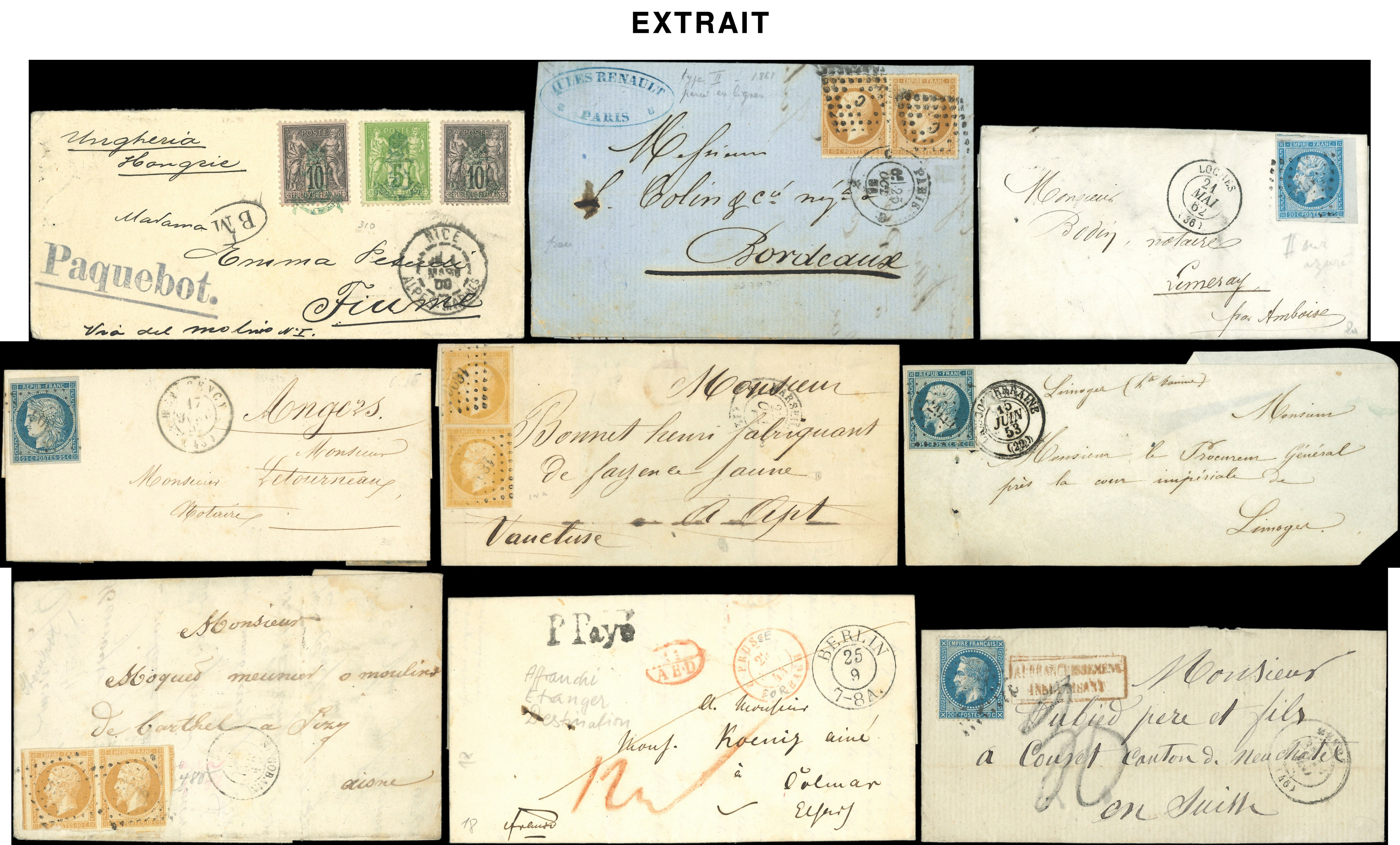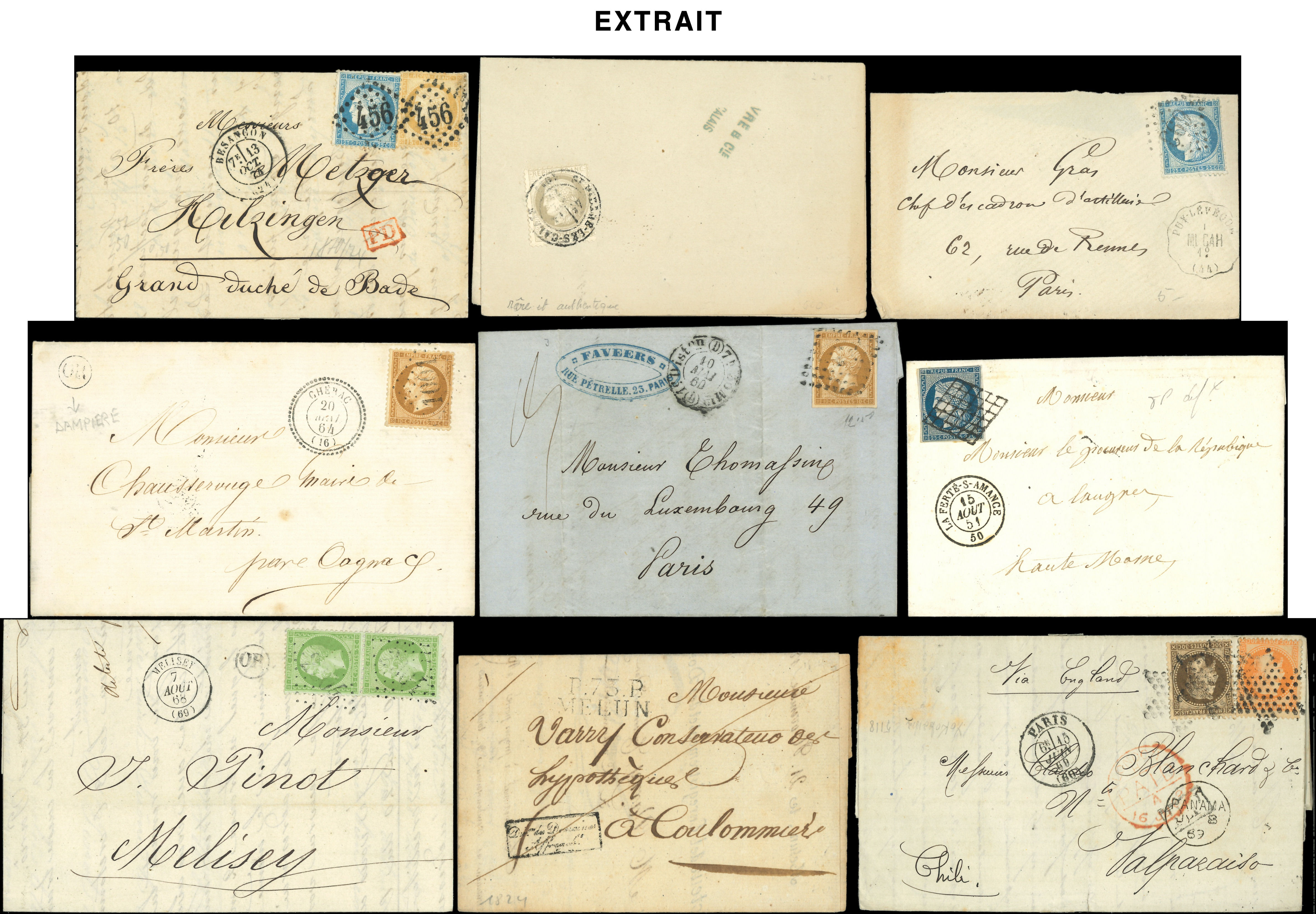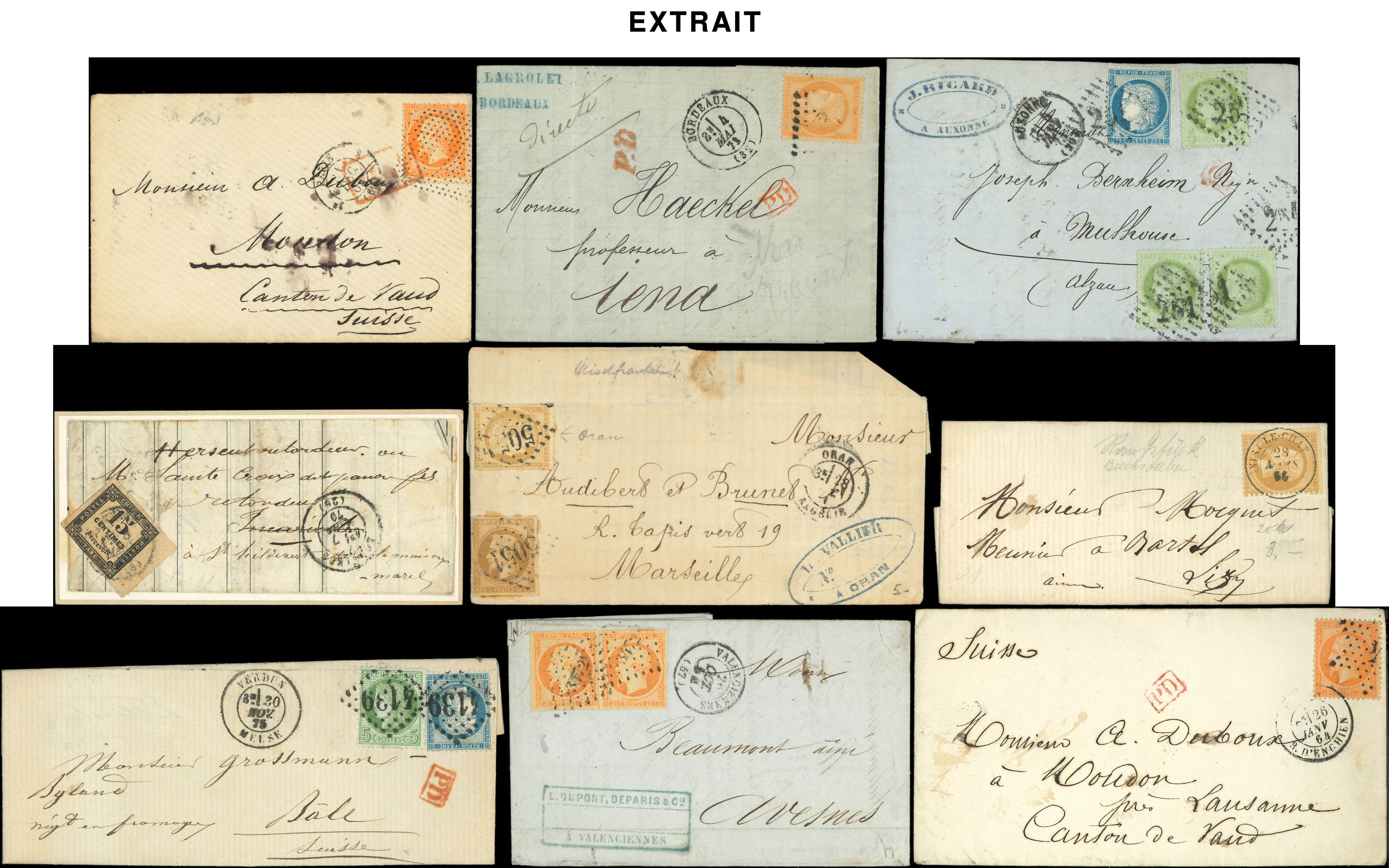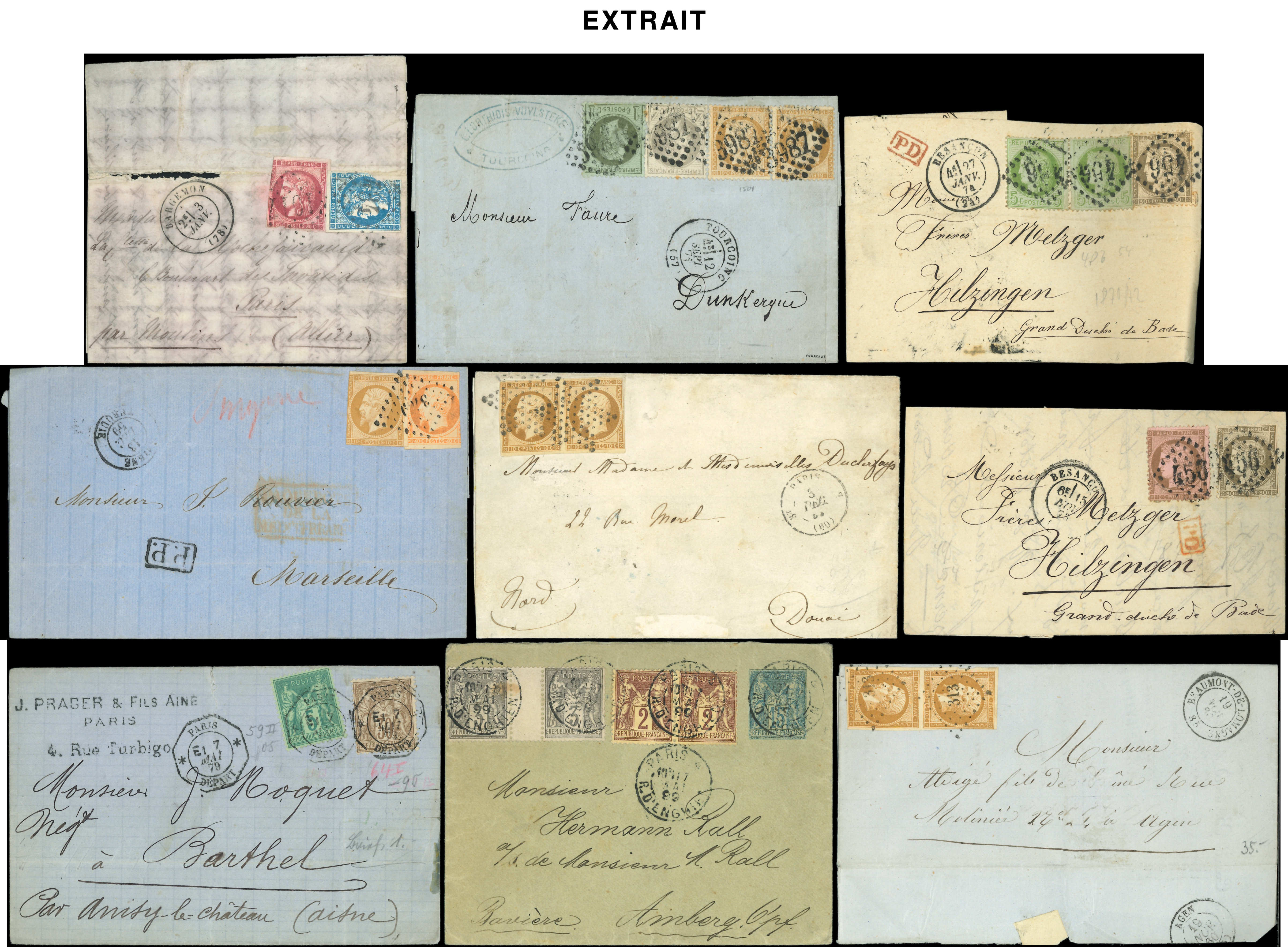 400 lettres ou documents classiques, nuances, obl., aff., destinations, à étudier (Image)