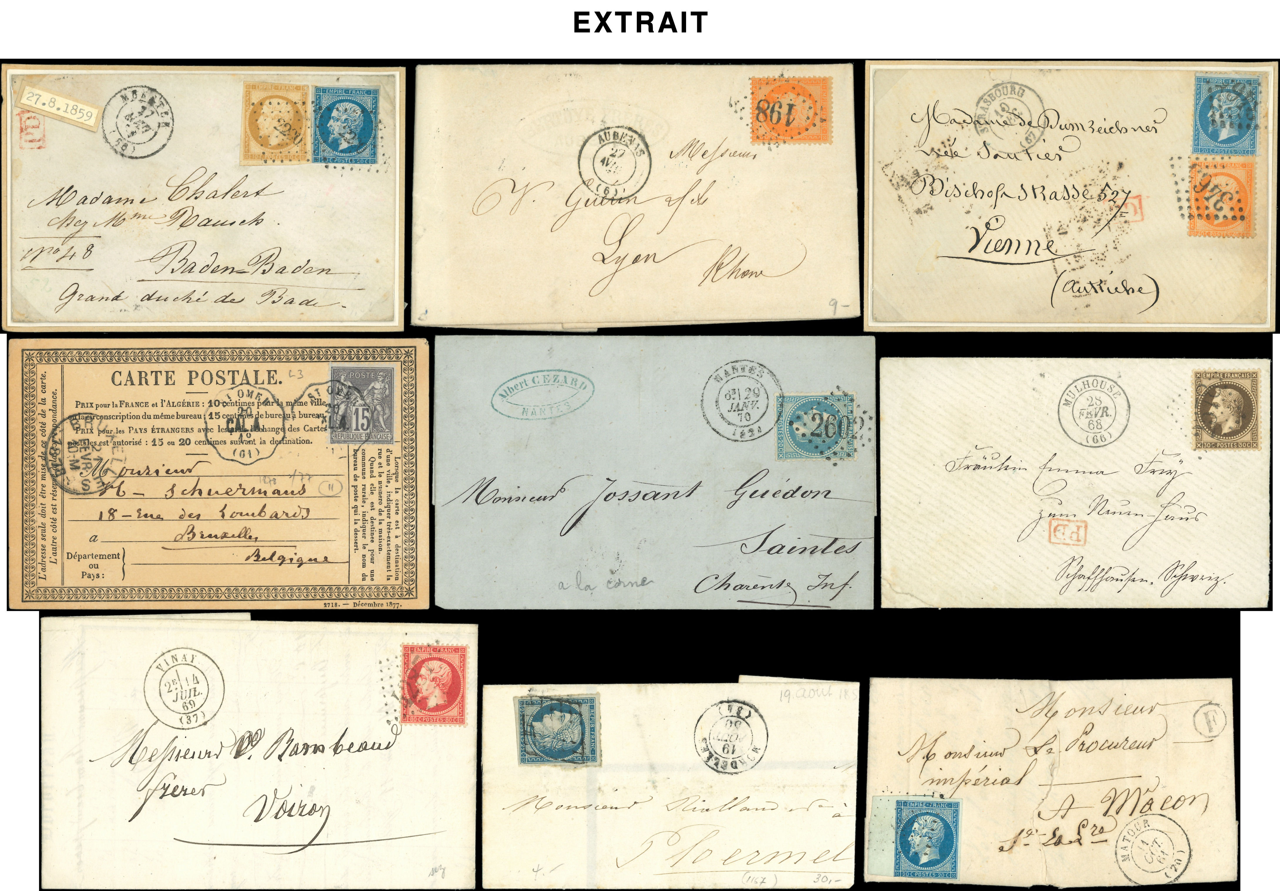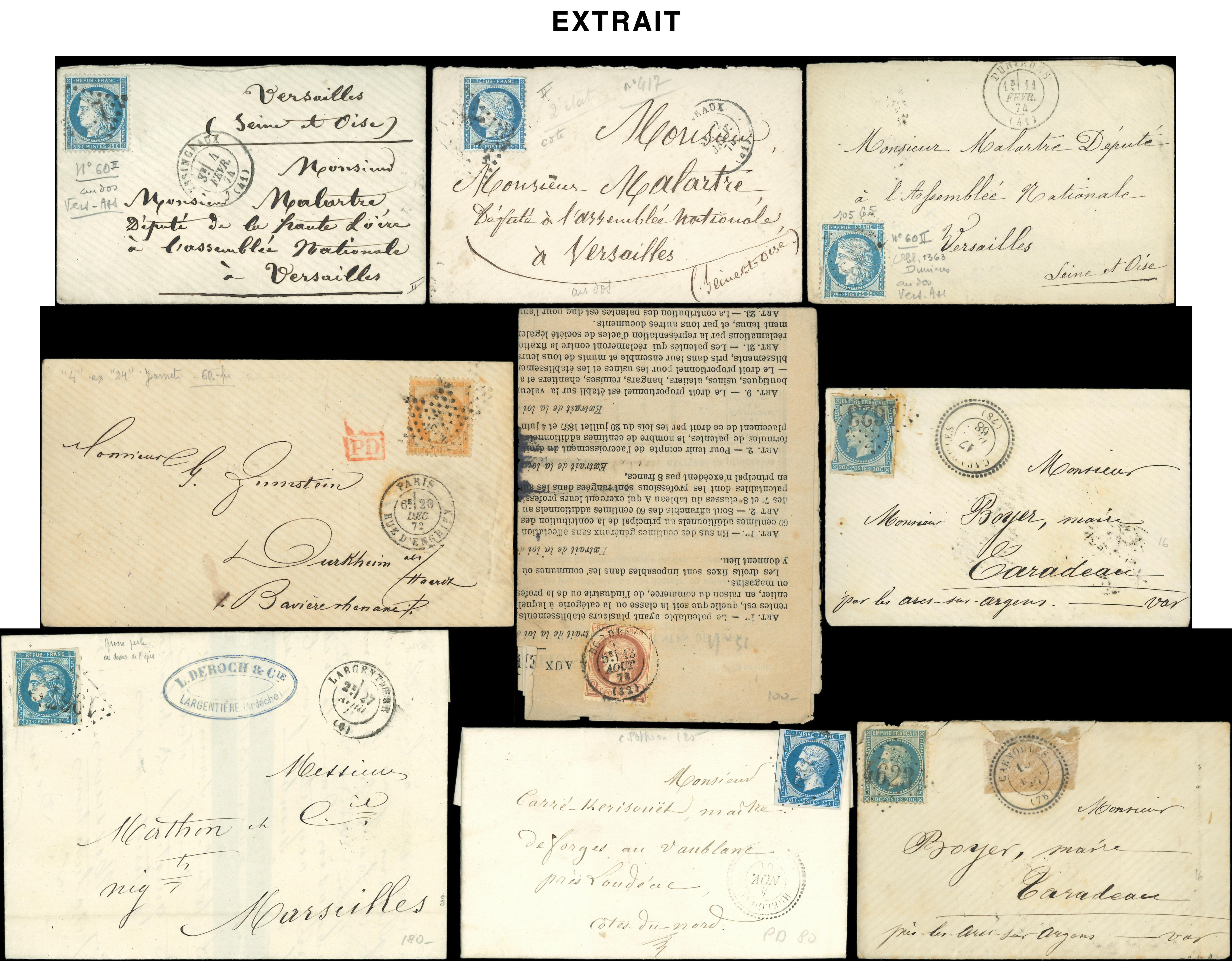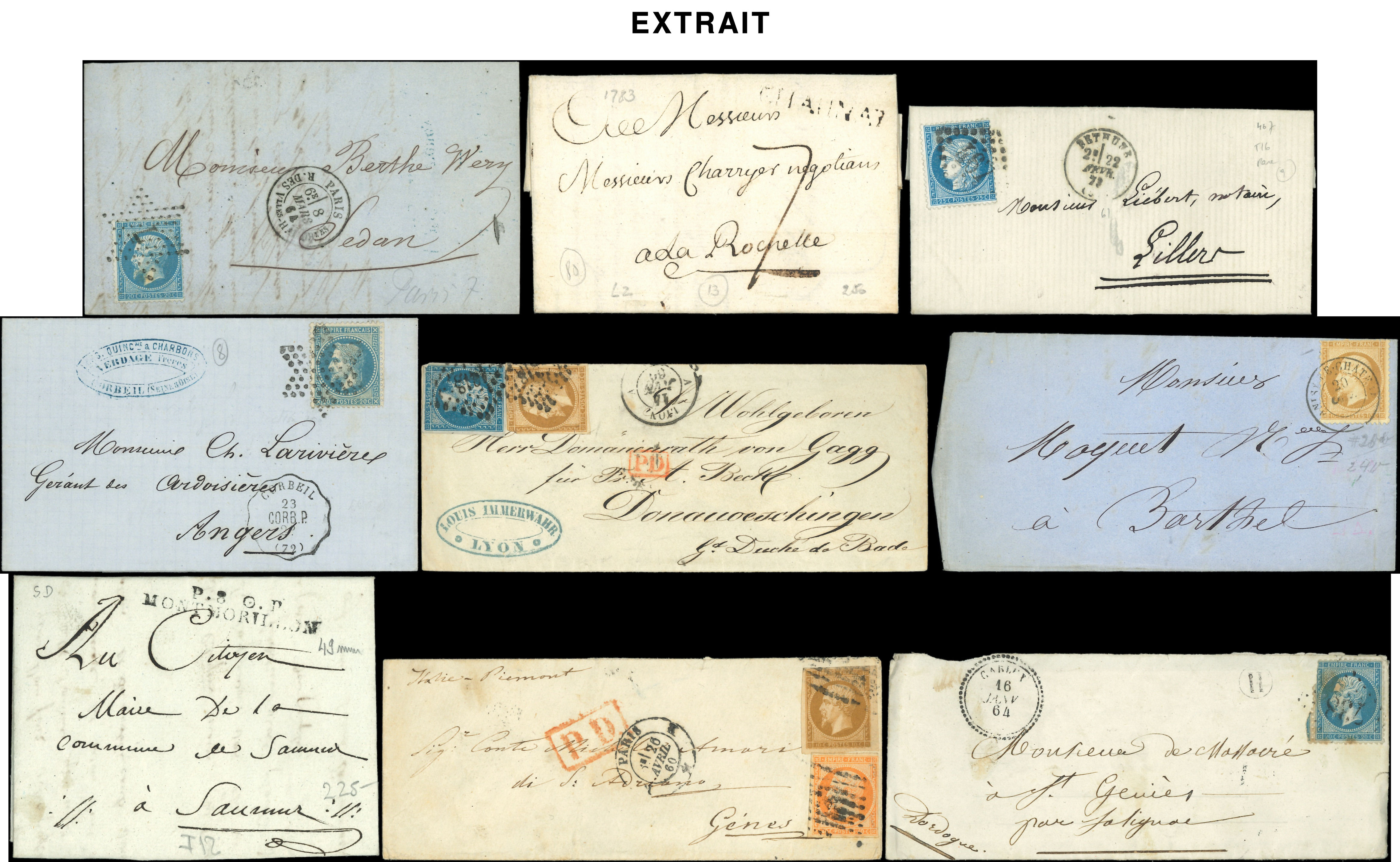 400 lettres ou documents classiques, nuances, obl., aff., destinations, à étudier (Image)