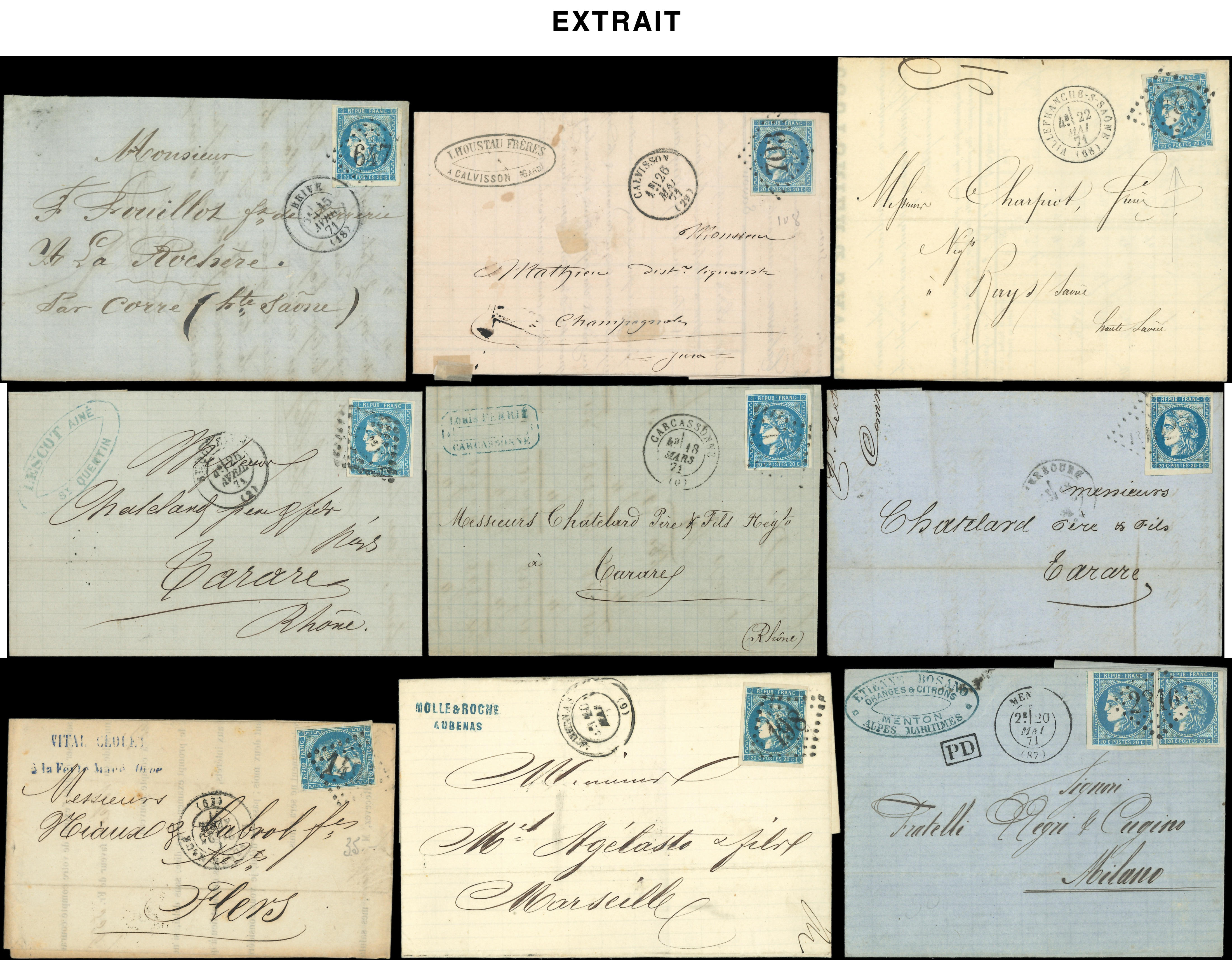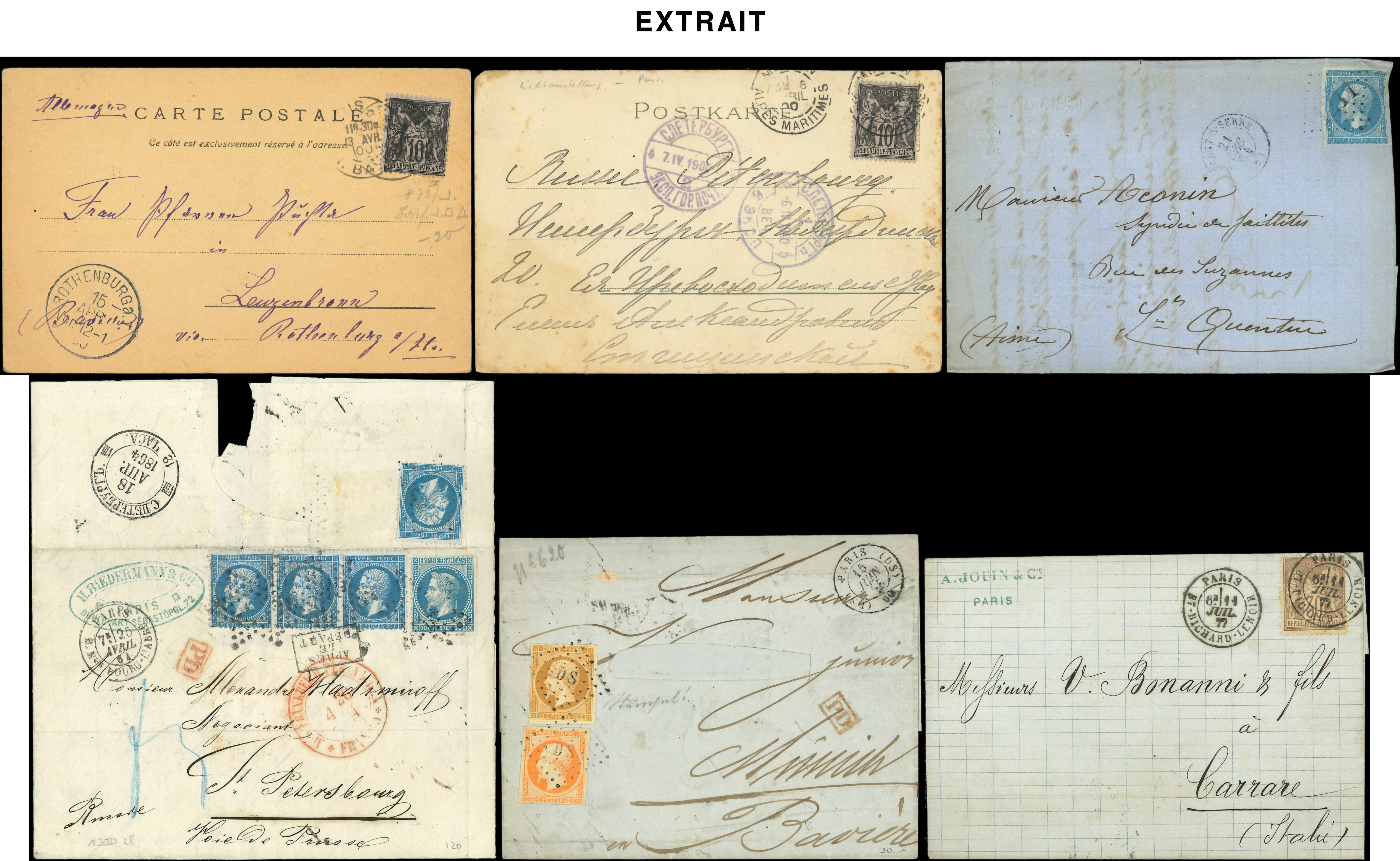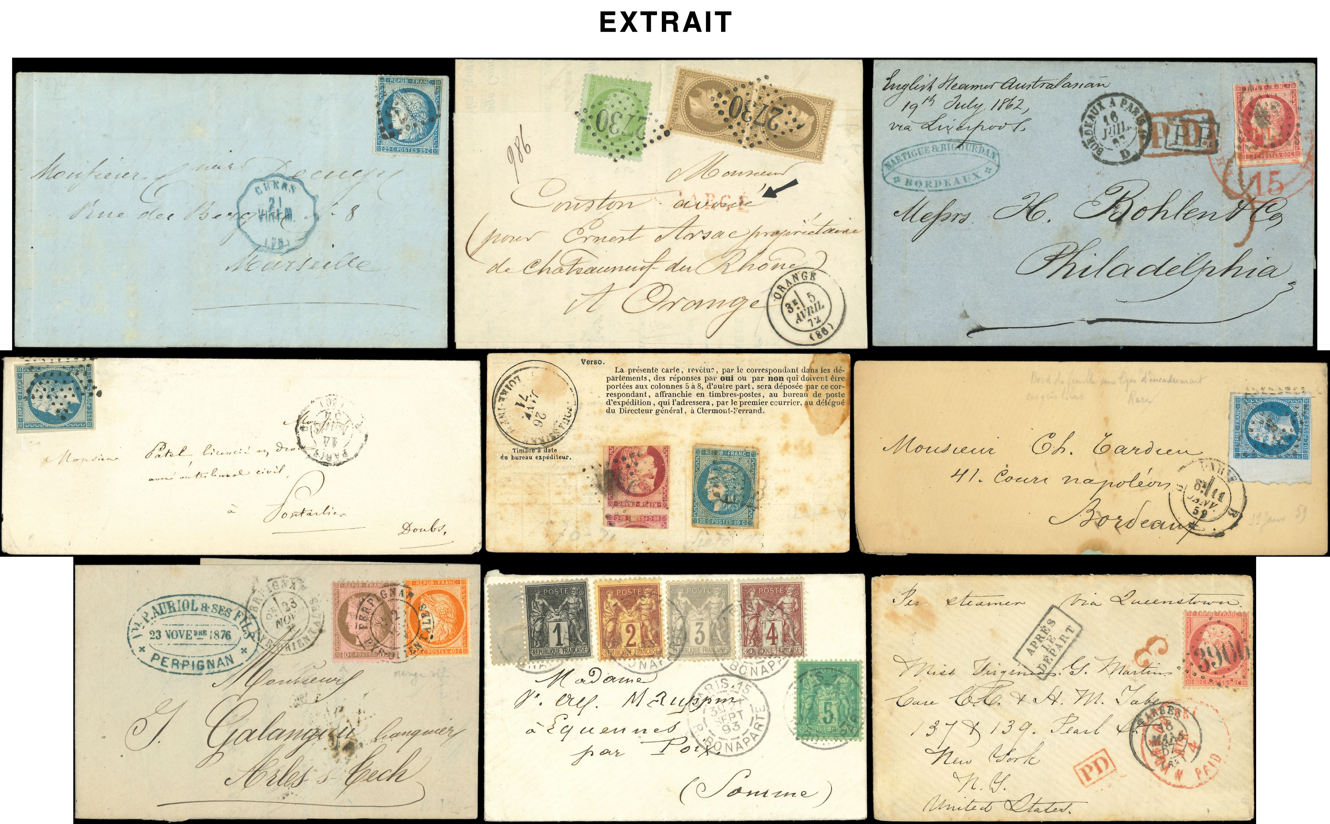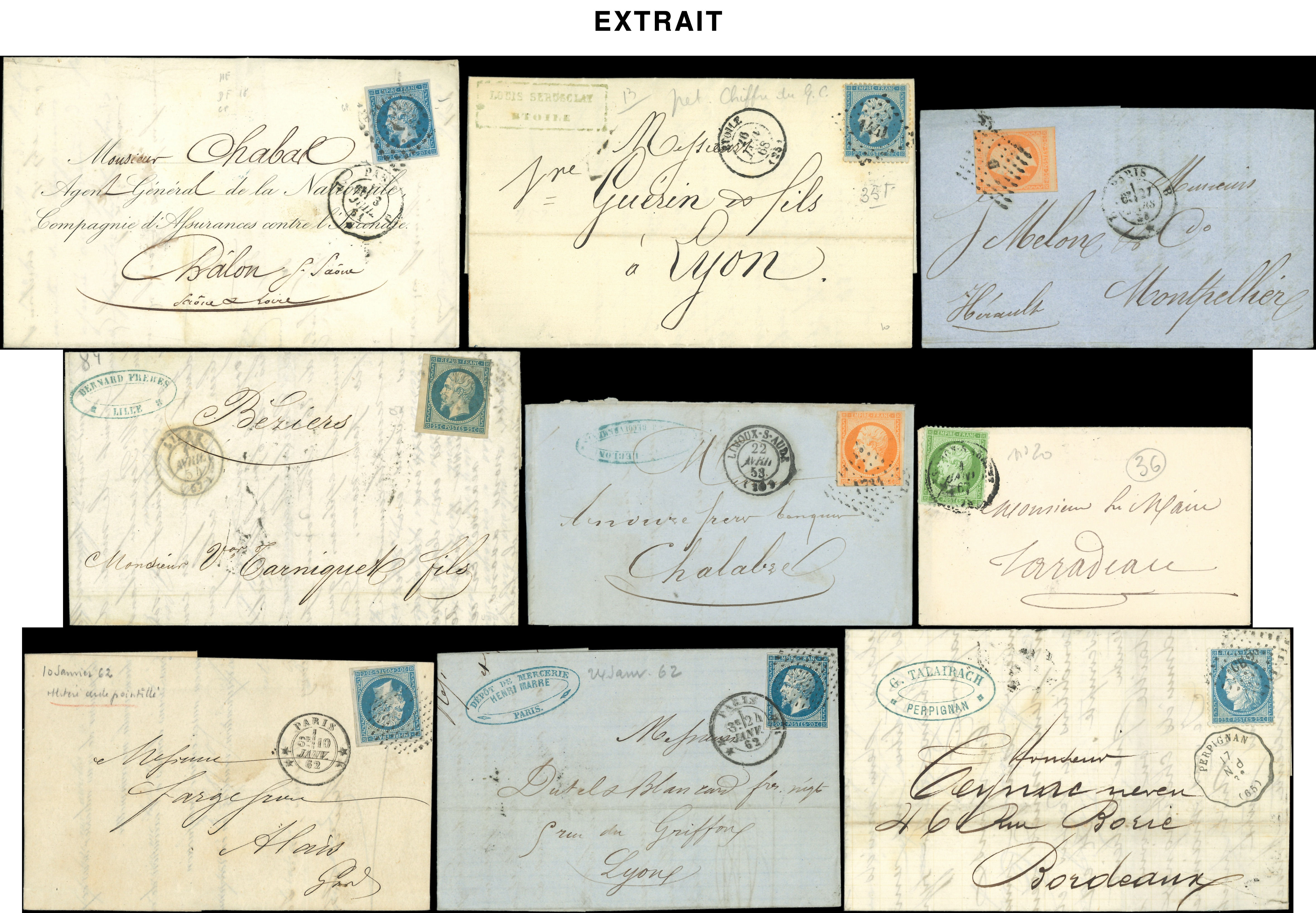 400 lettres ou documents classiques, nuances, obl., aff., destinations, à étudier (Image)