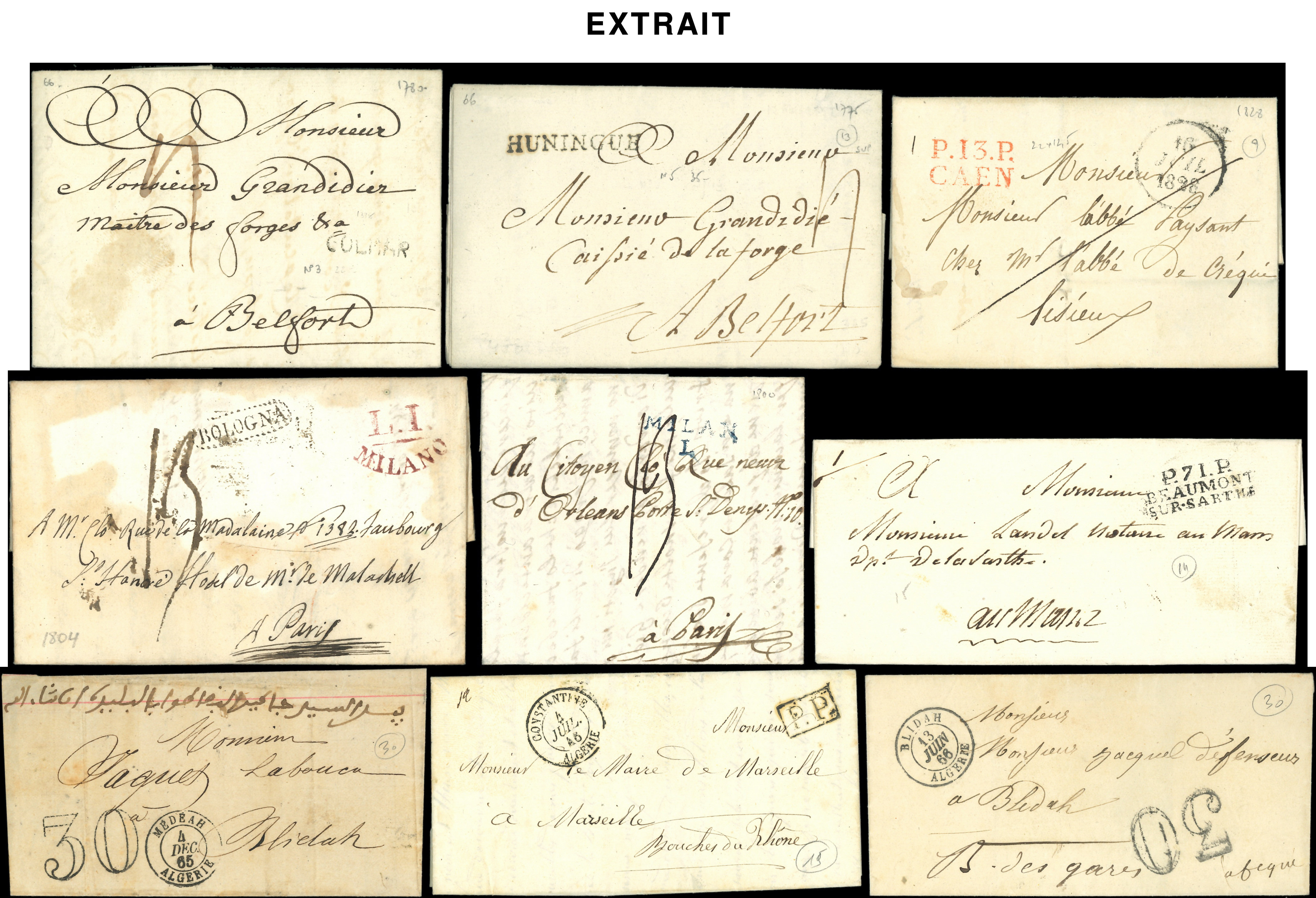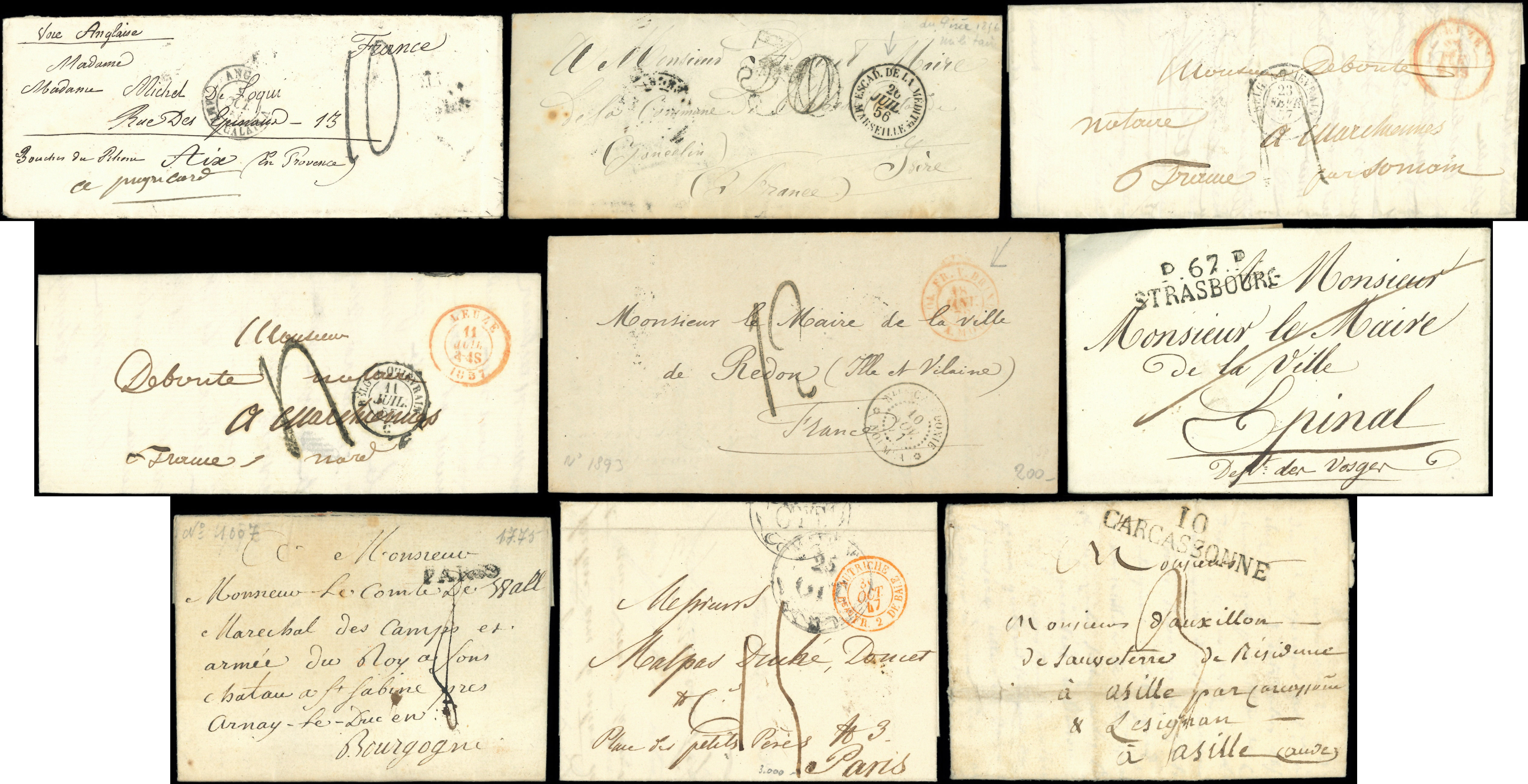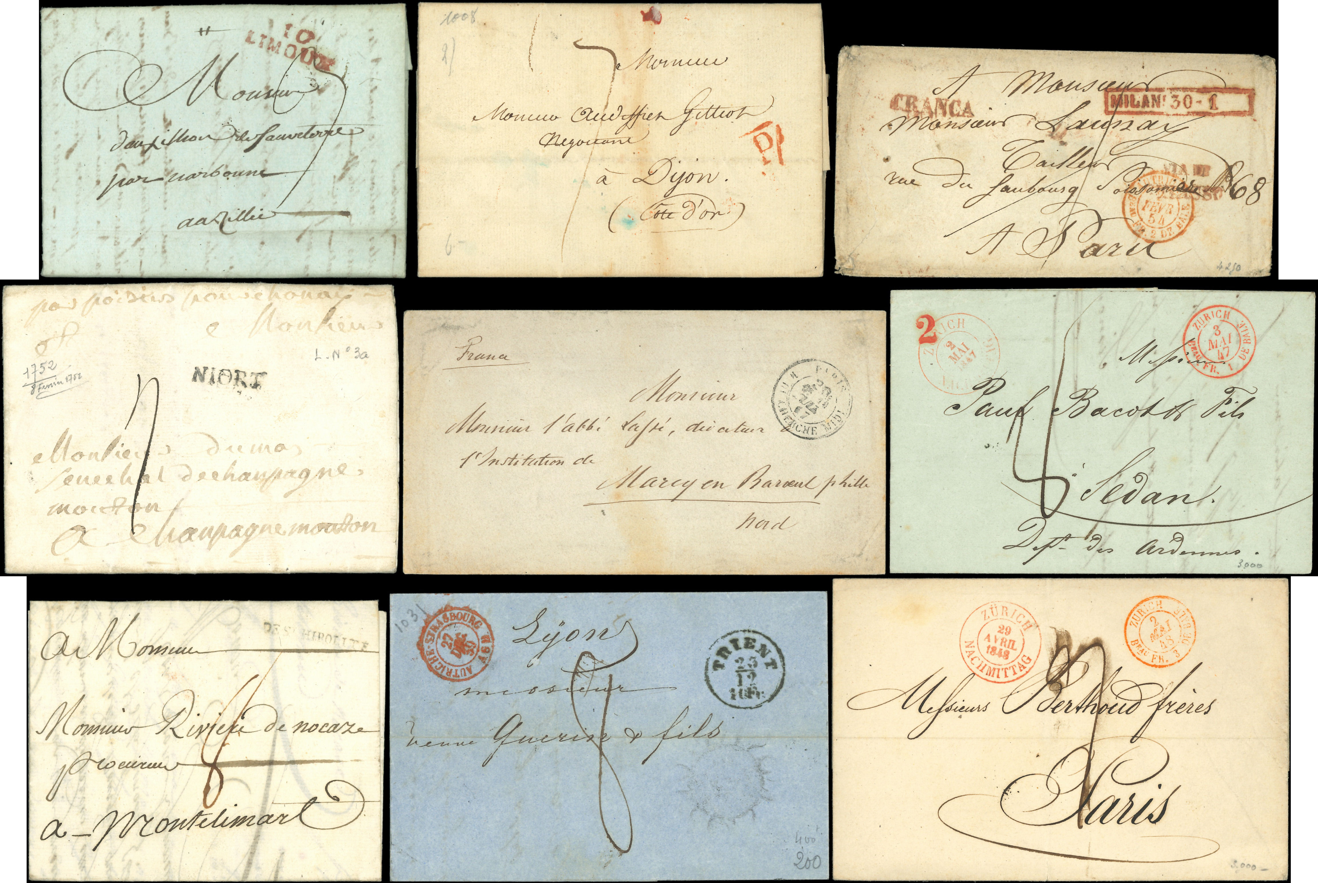 timbre en provenance d'Allemagne (3), Italie et Grande Bretagne en Janvier 1849 à destination de la France, cachets divers, TB (Image)