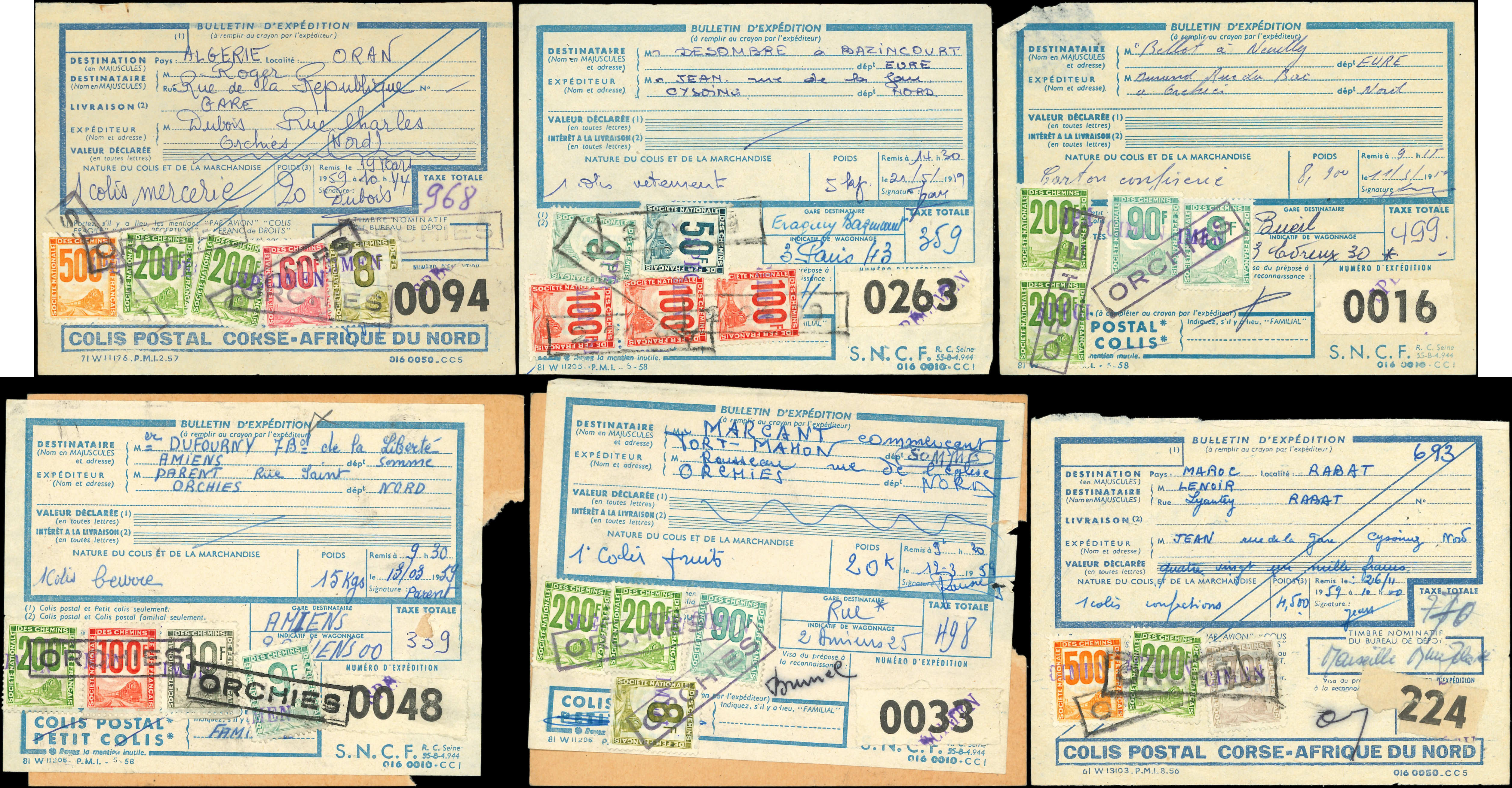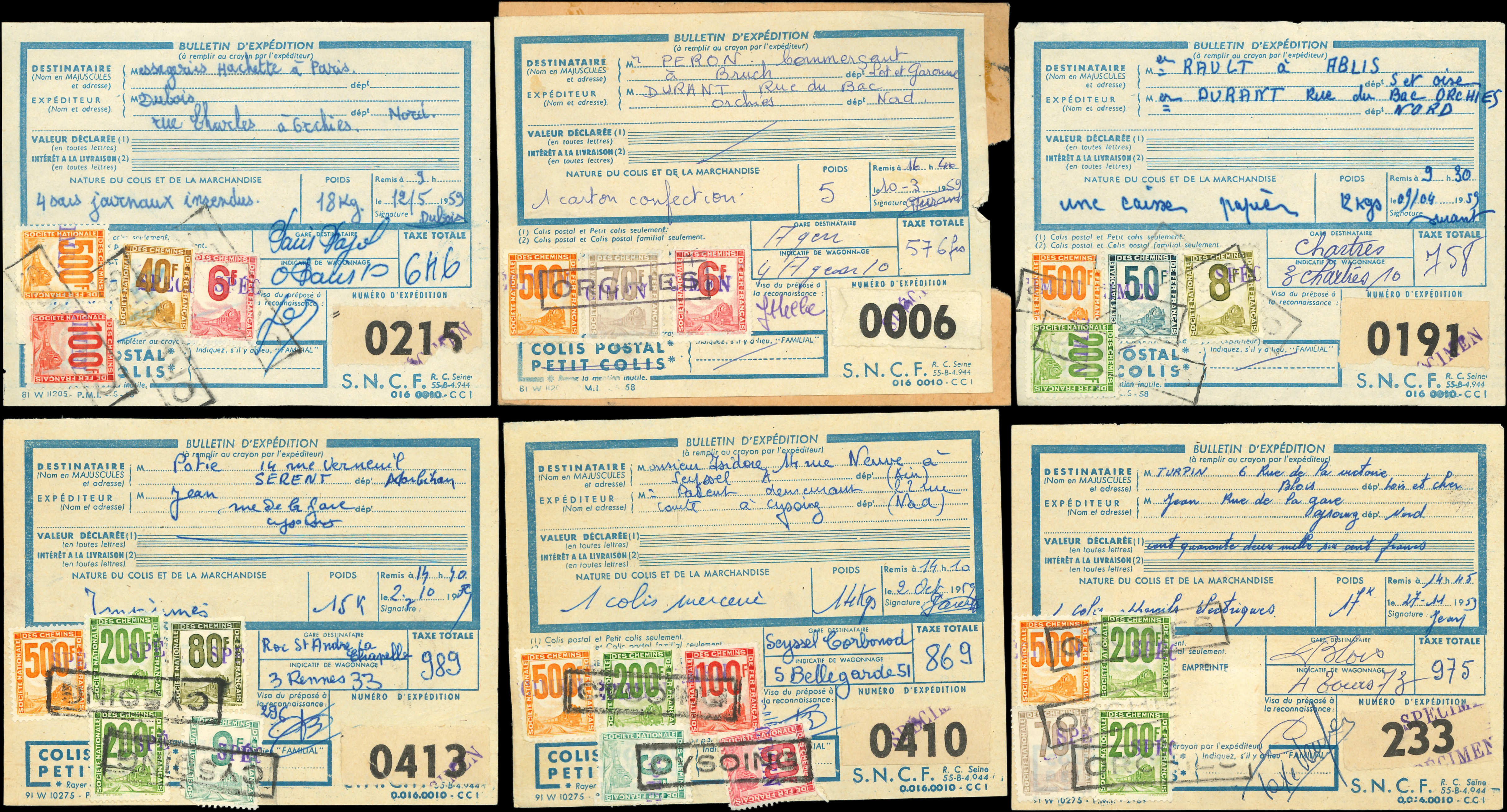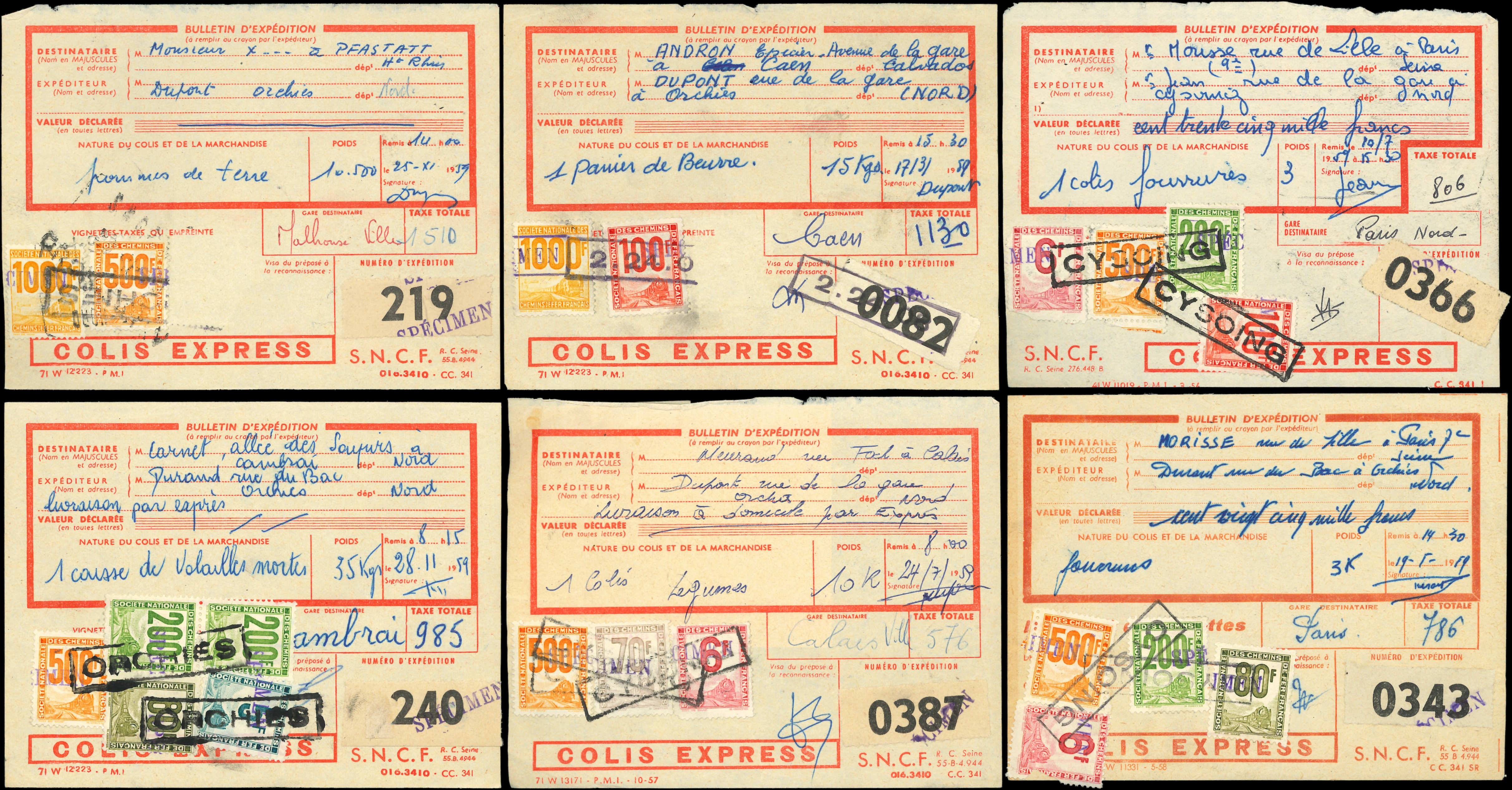 lot de 34 Bulletins d'Expédition affr. divers TP pour Petits Colis surchargés SPECIMEN (Image) (Image2)