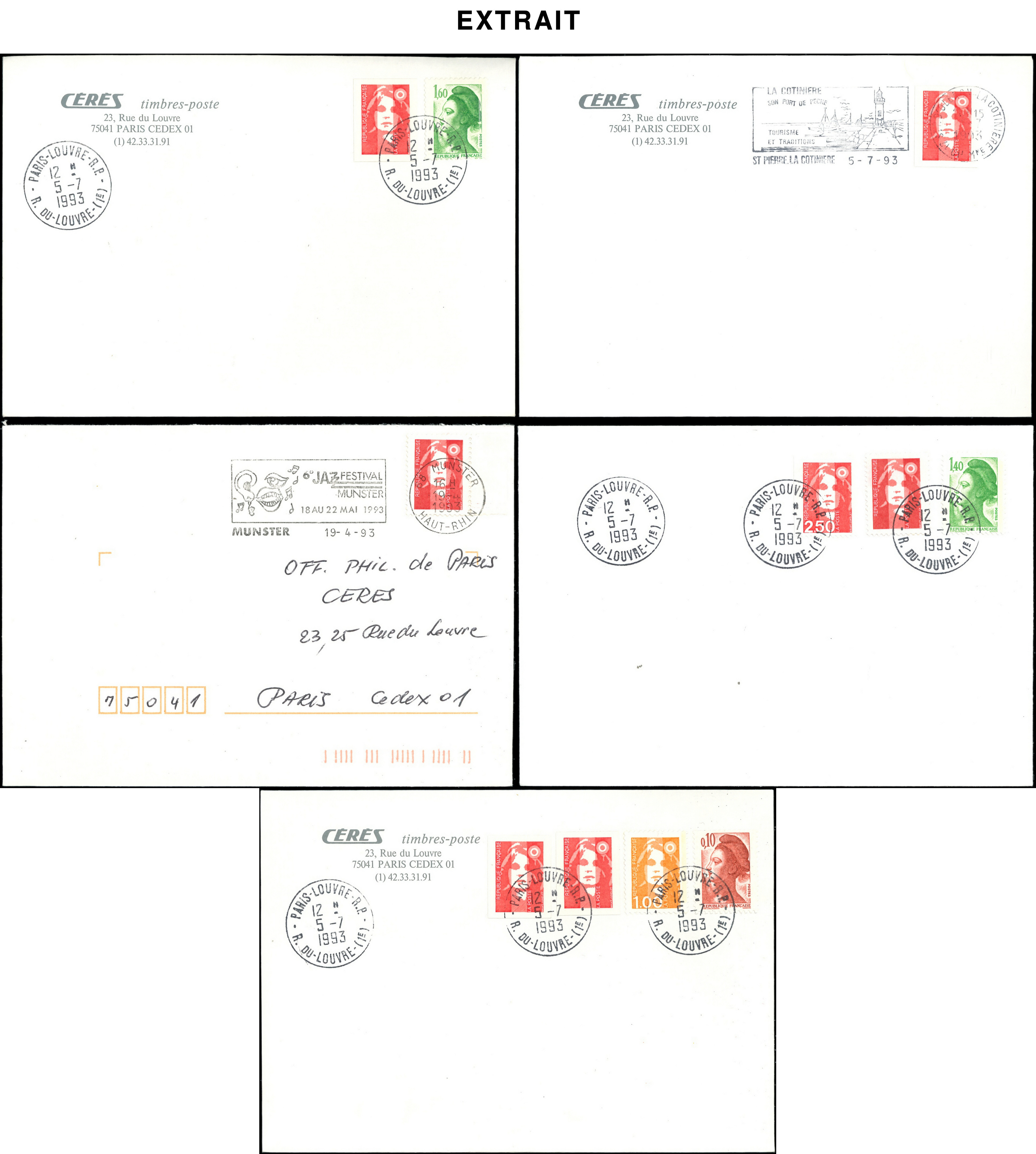 250 lettres affr. à base de TVP Briat, obl. 19/4/93 et 5/7/93 (1er jour du tarif à 2f80), TB (Image)