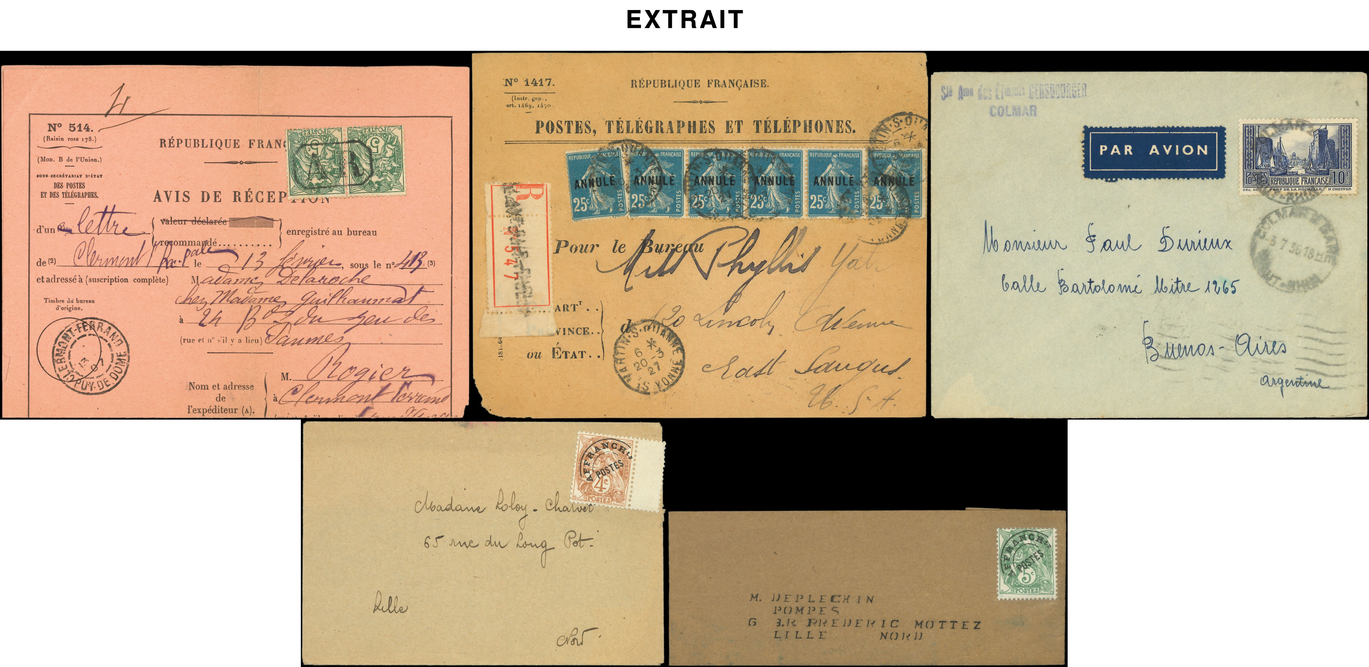 plis affr. semi-modernes dont timbres de roulettes, PA 15 défx etc... (Image)