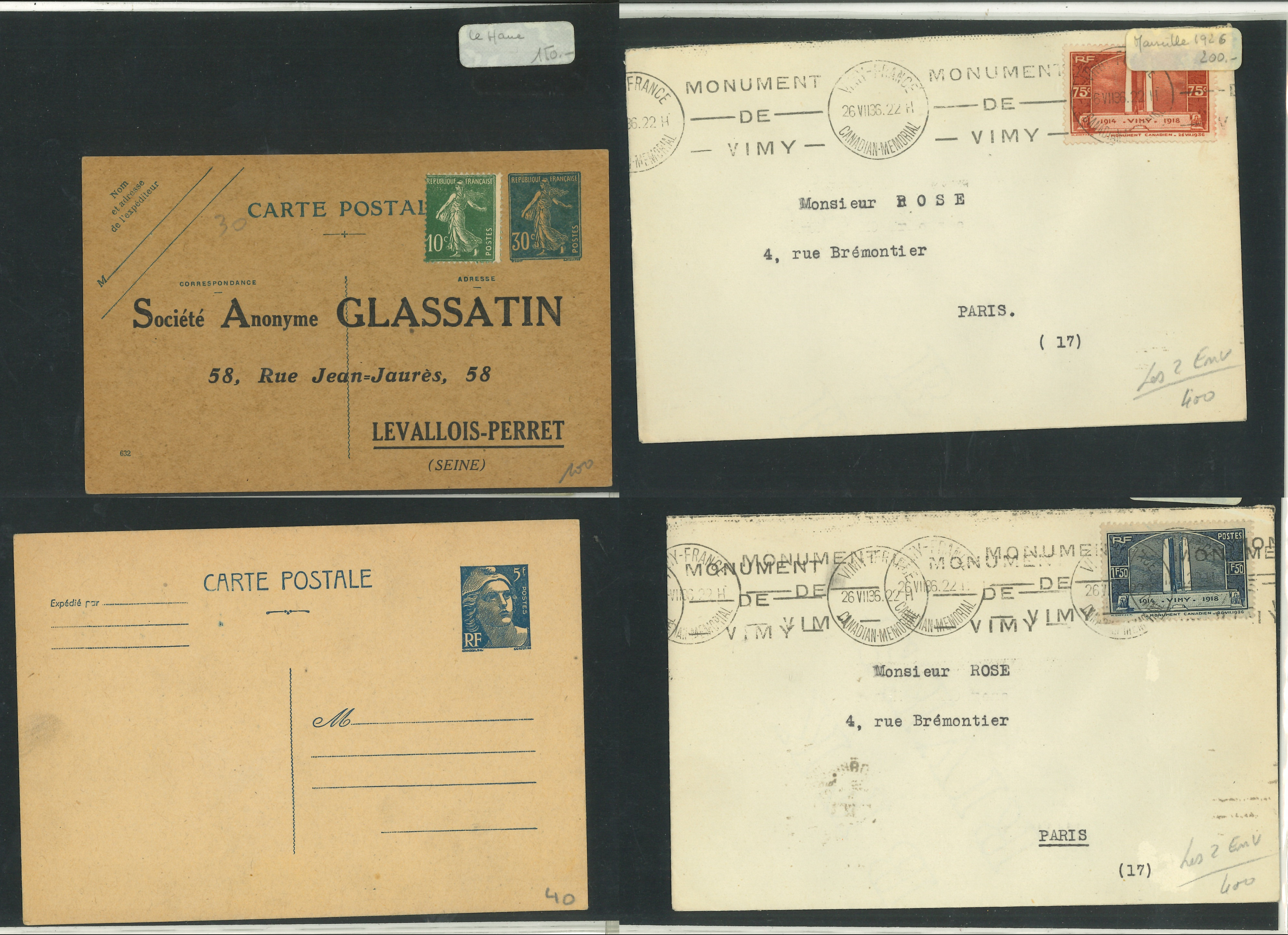 400 Lettres ou documents divers, en majorité France XXe siècle, très bon lot (Image)