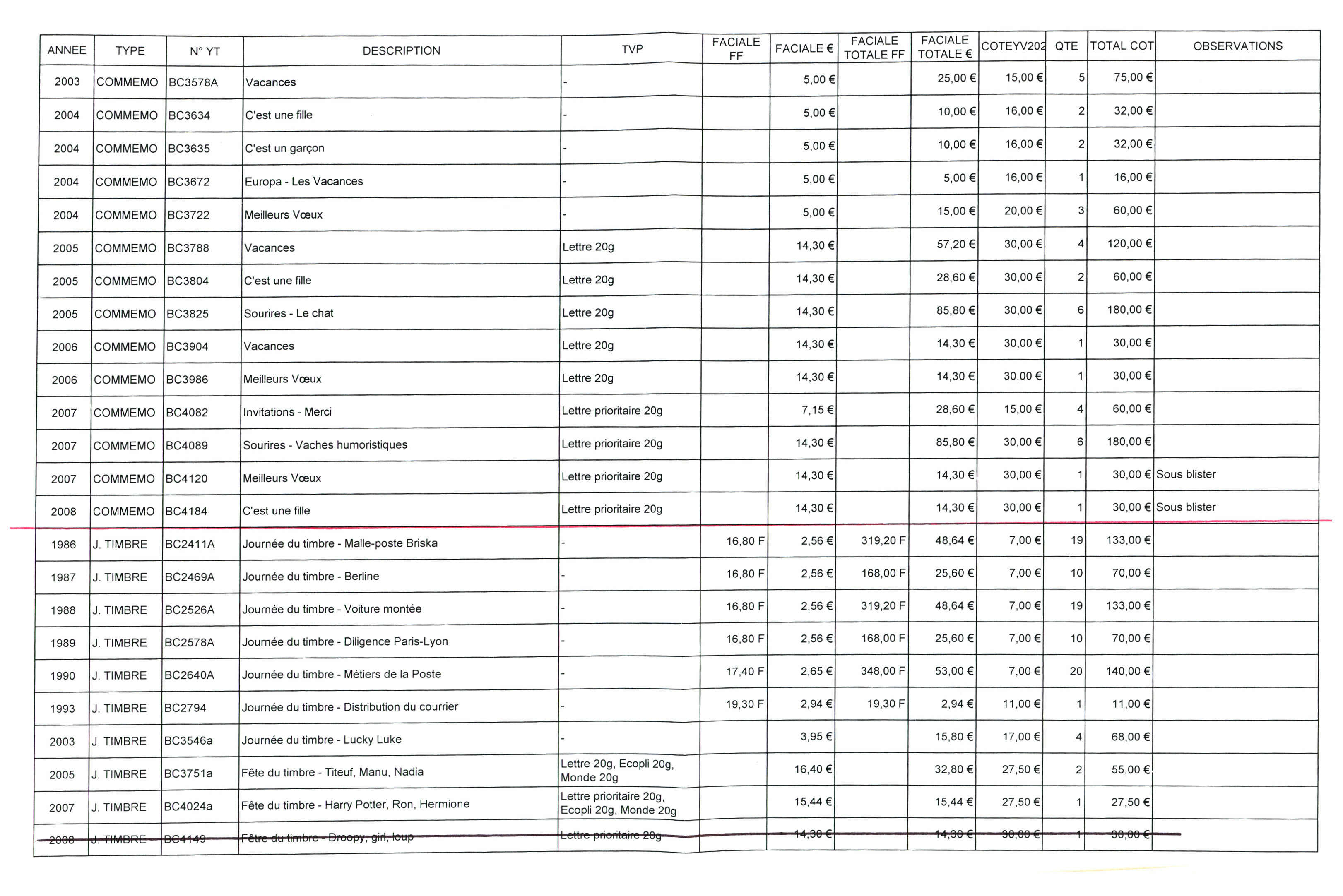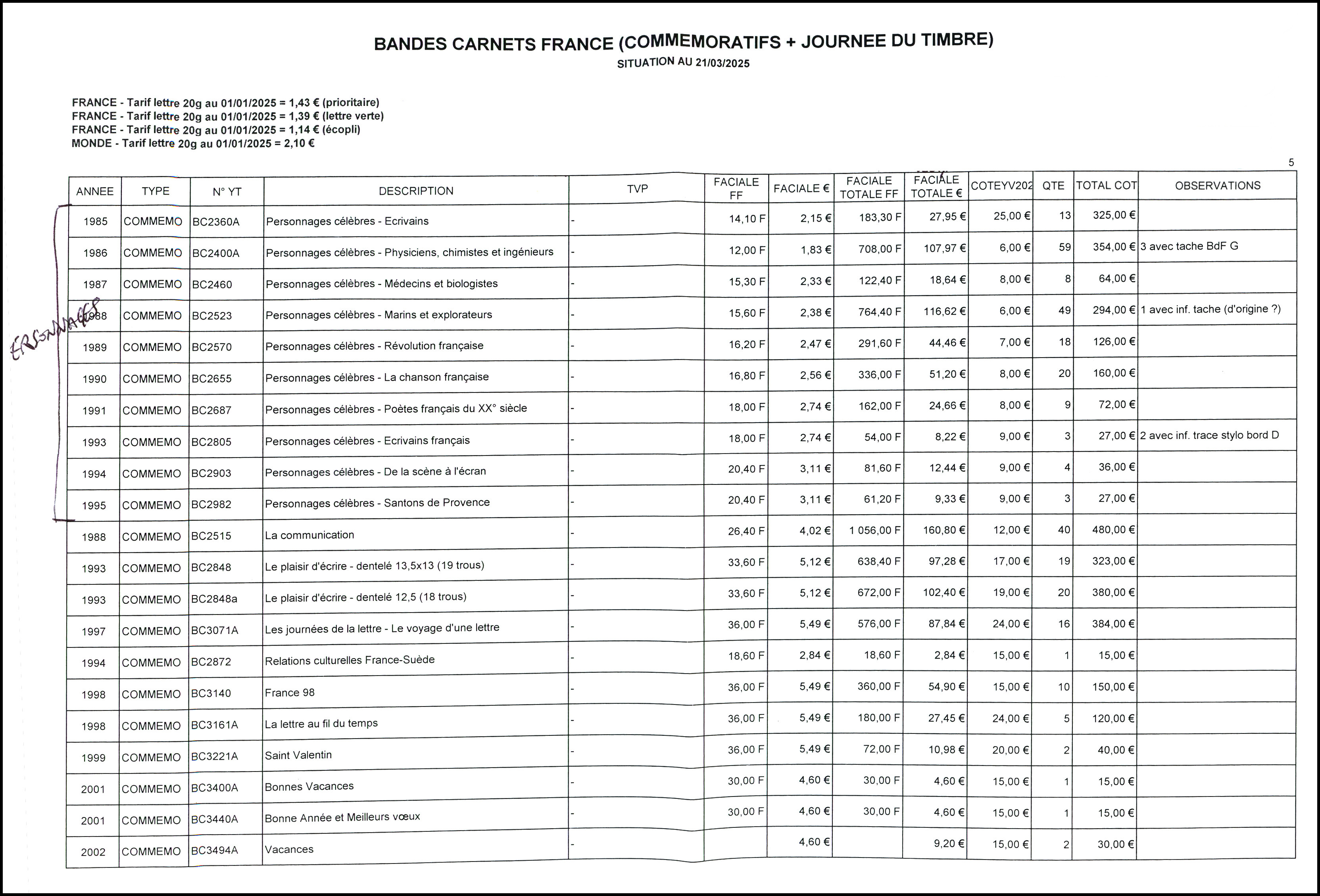 commémo et BF entre 1982 et 1995, 16 différents, faciale + 400 €, TB (Image)