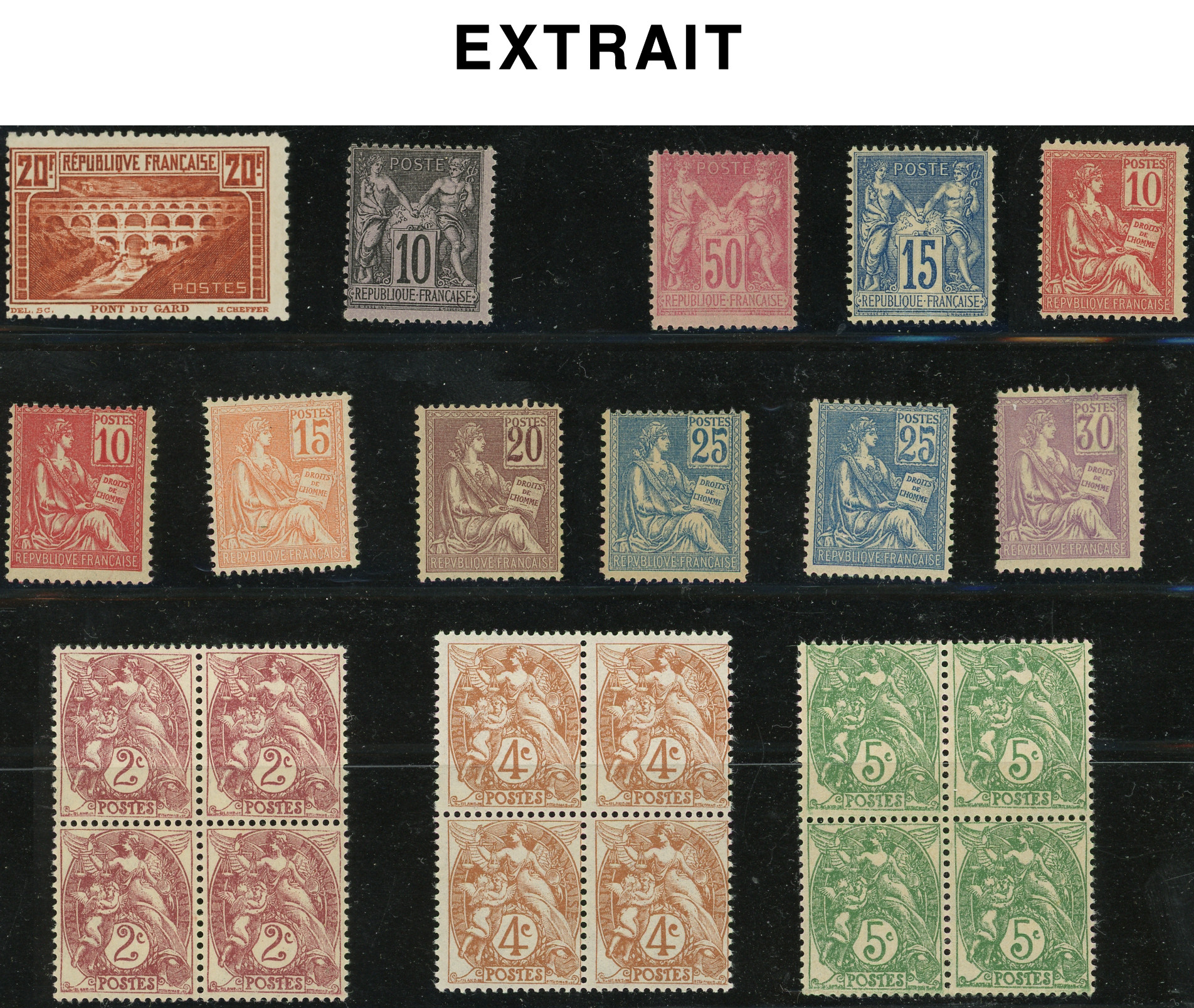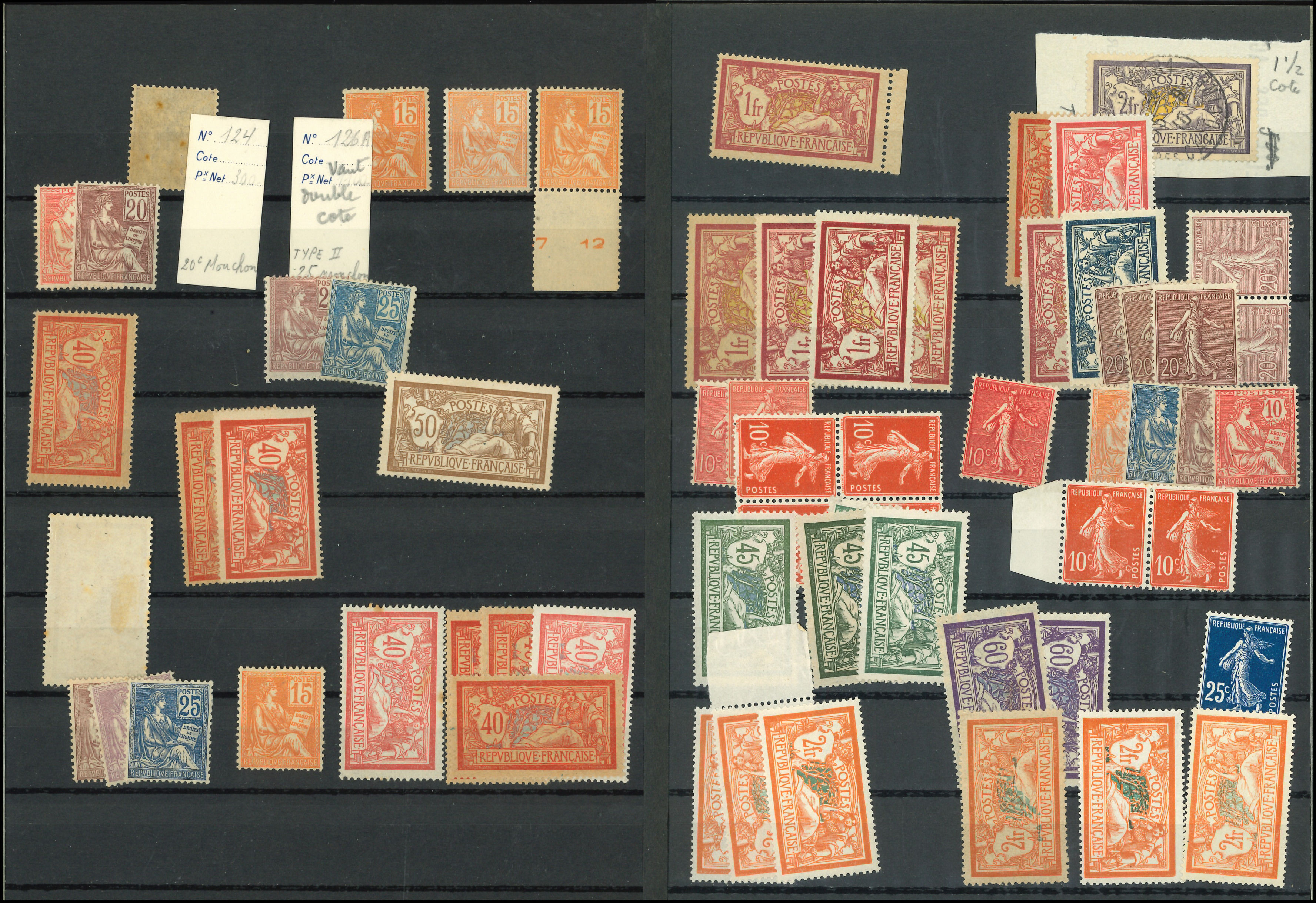 modernes en feuilles, fragments ou égrainés, nombreuses valeurs moyennes, comme par exemple N°291 (45), 293 (190), 314 (500), 315 (446), 338 (633), 876/77 (645), 879 (390), liste disponible sur demande, TB (Image) (Image2)