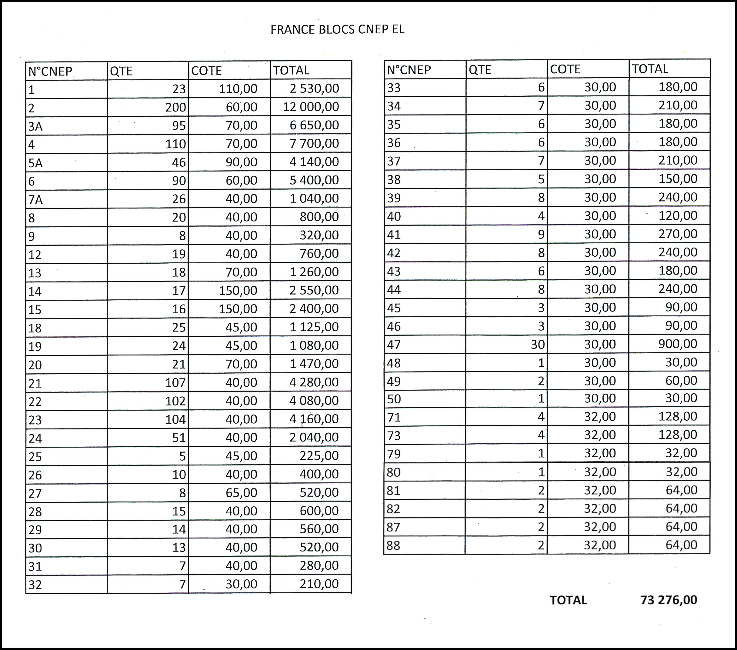 par multiples entre 1974 et 1989, faciale + de 2000 €, TB (Image) (Image2)