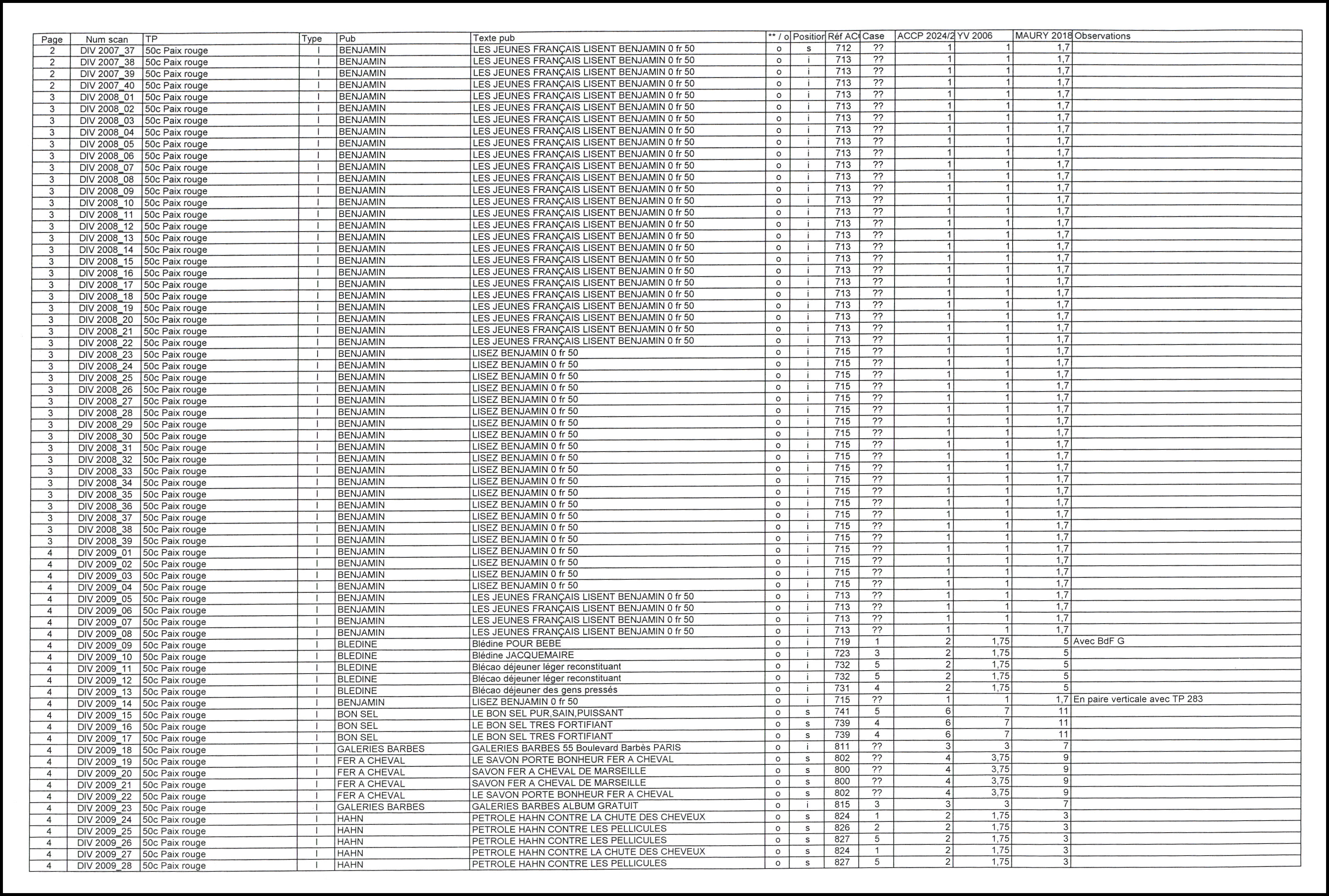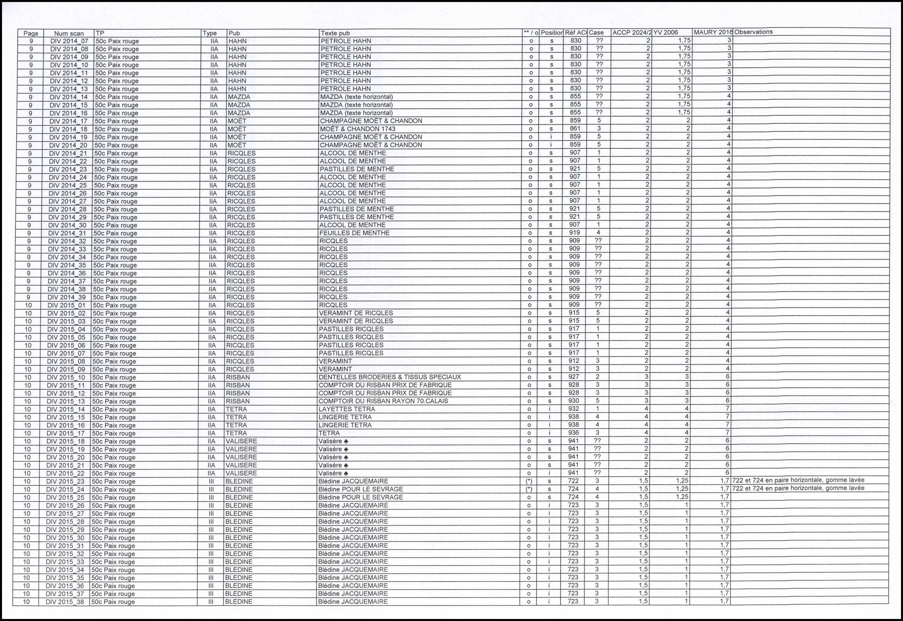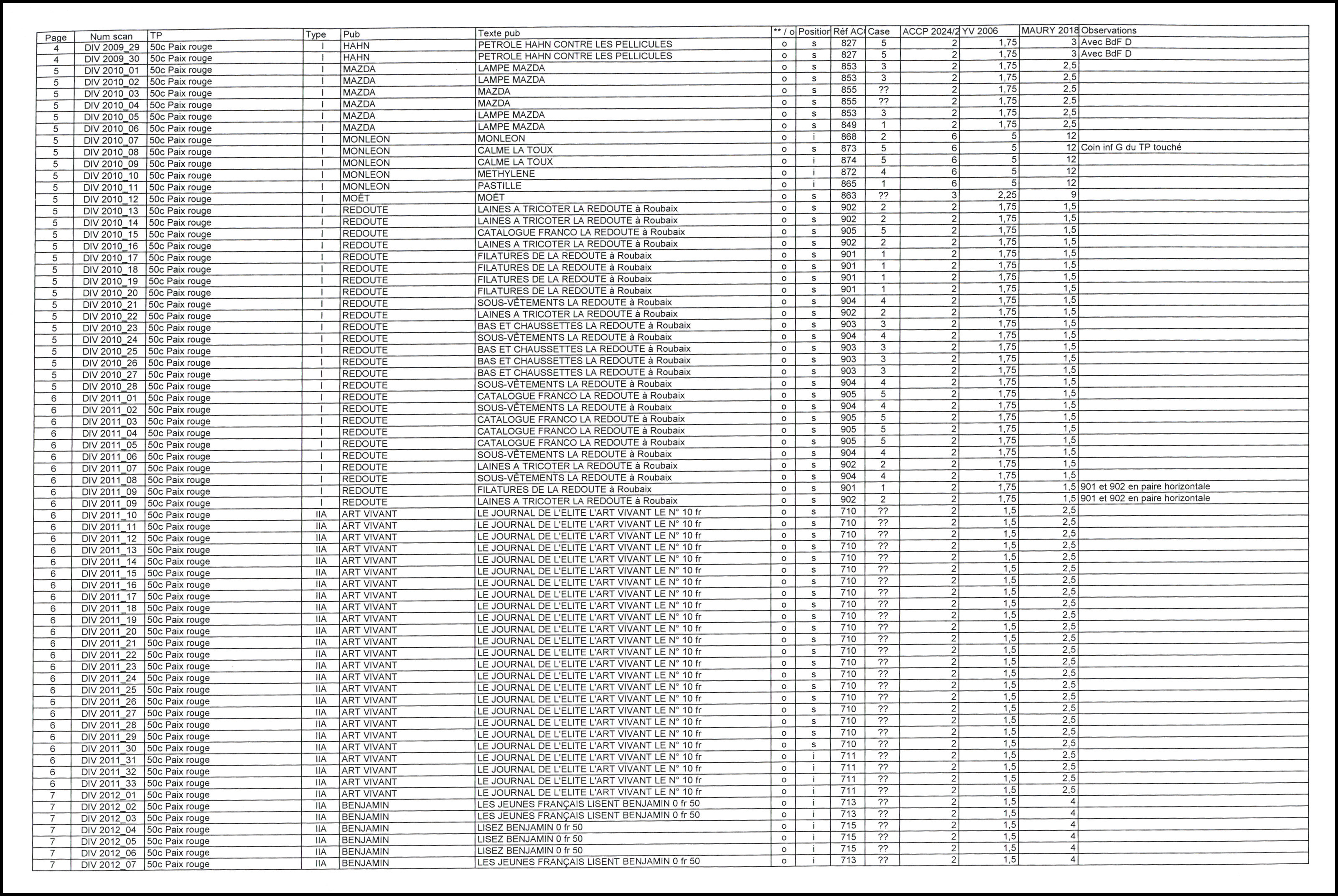 Non Dentelés, lot