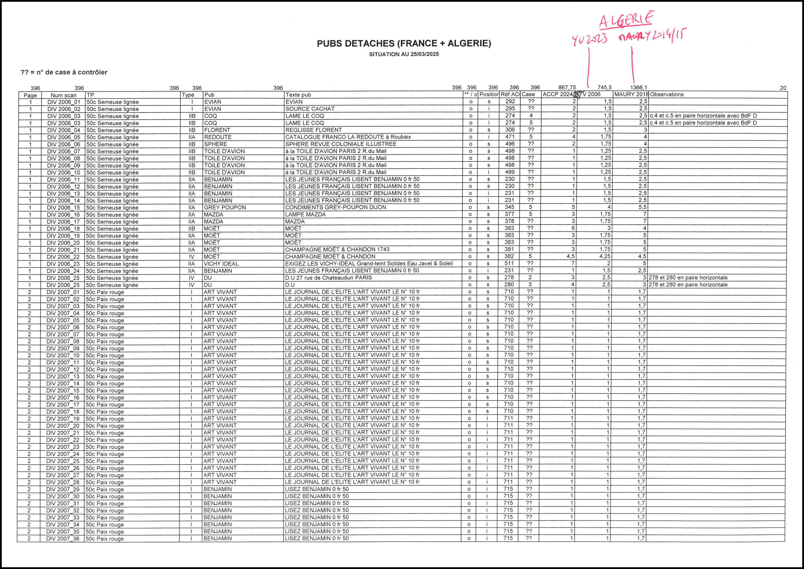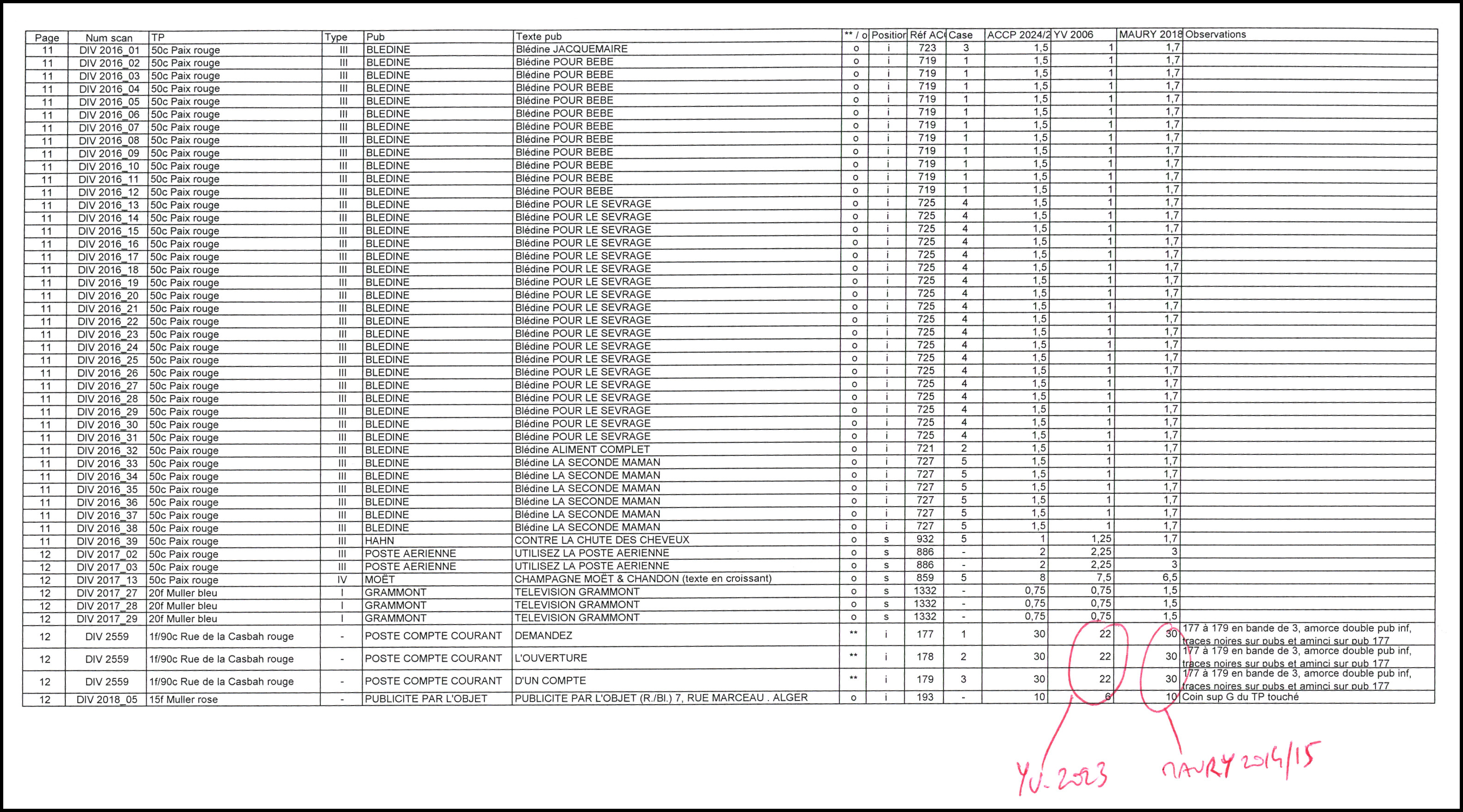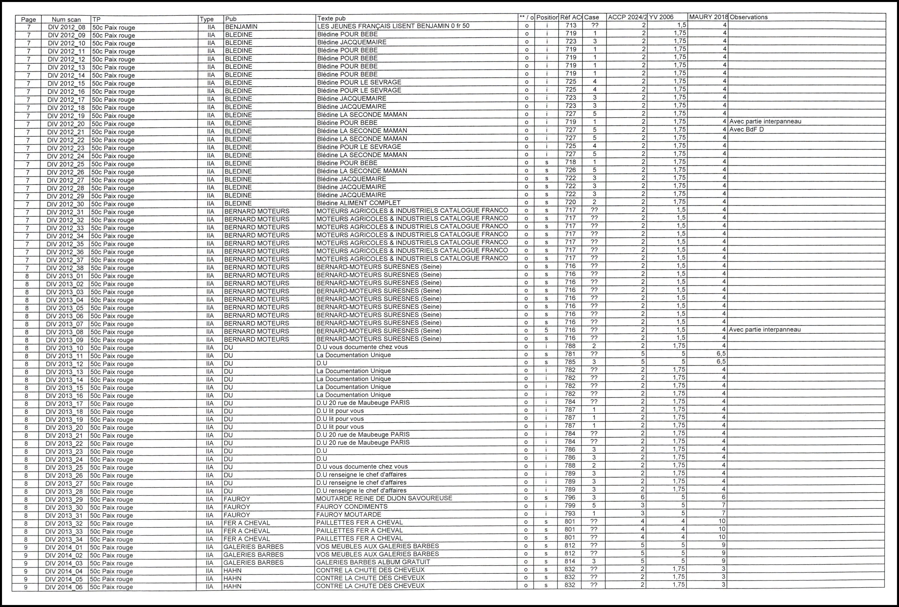 Non Dentelés, lot