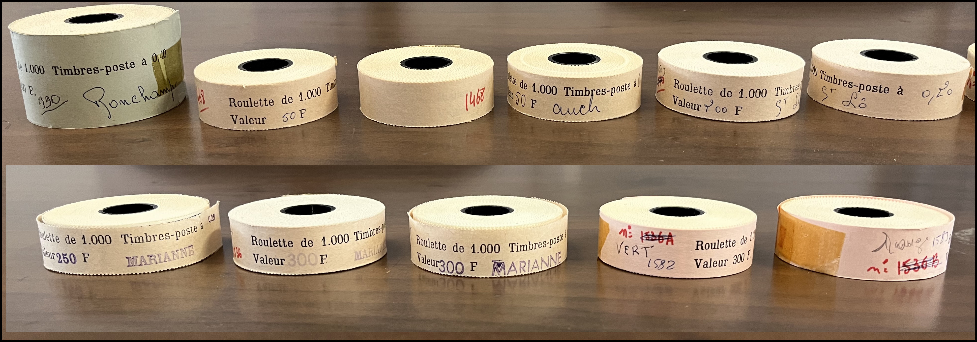 Roulettes de Muller à Liberté dans une grosse boite, 29 ex. différents, cote et faciale très importantes, TB (Image)