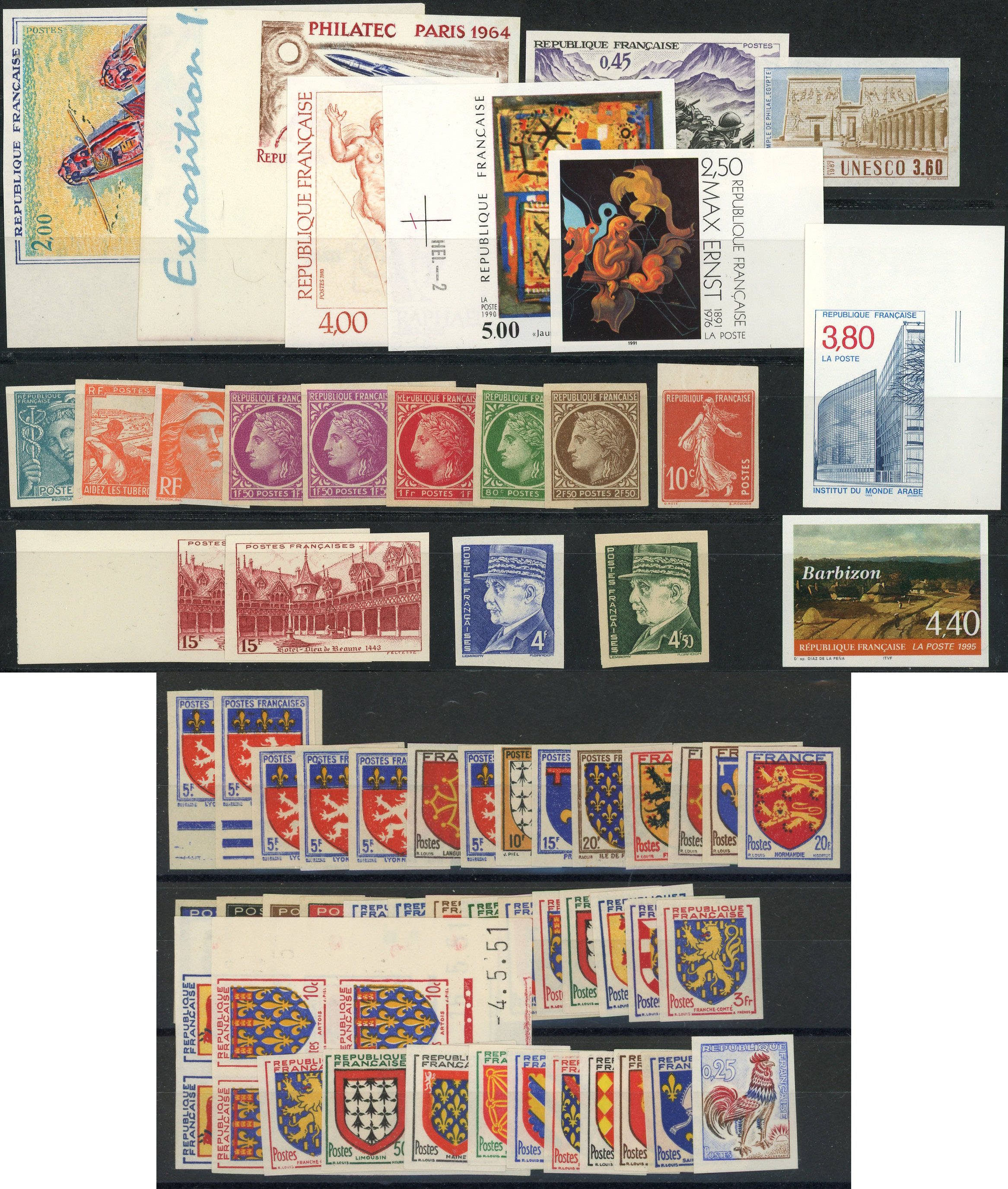 Dentelés entre 1945 et 1995, Poste et annexes, plus de 80 pièces, qqs ex. *, TB (Image)