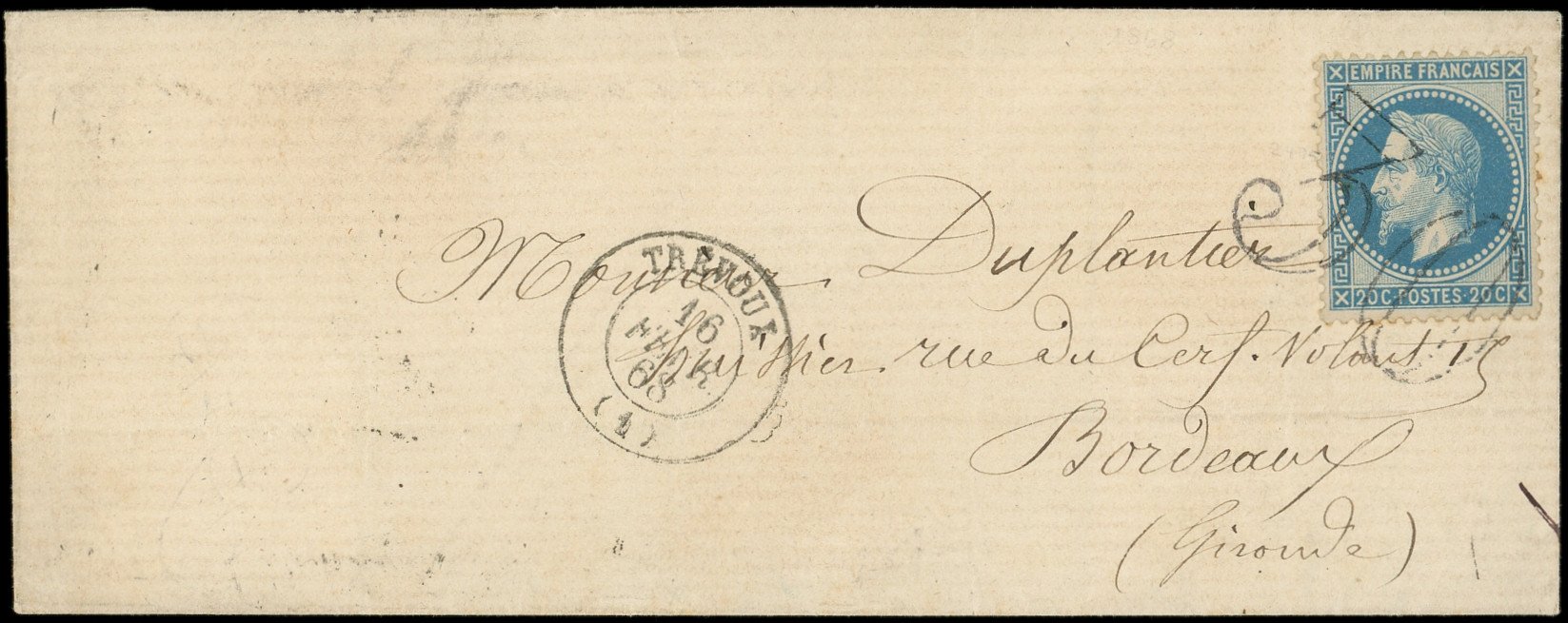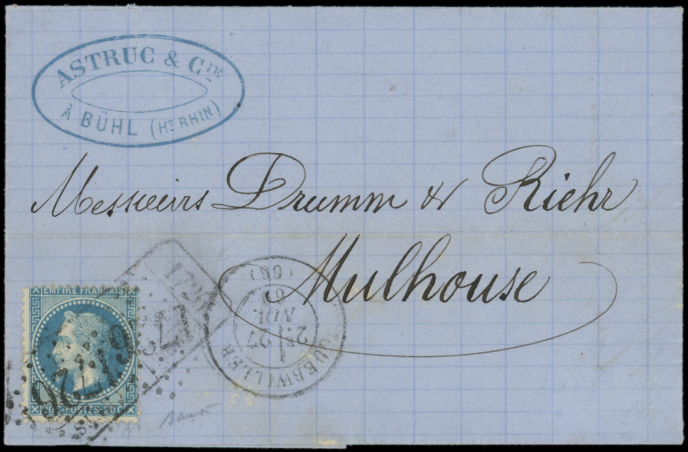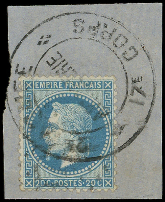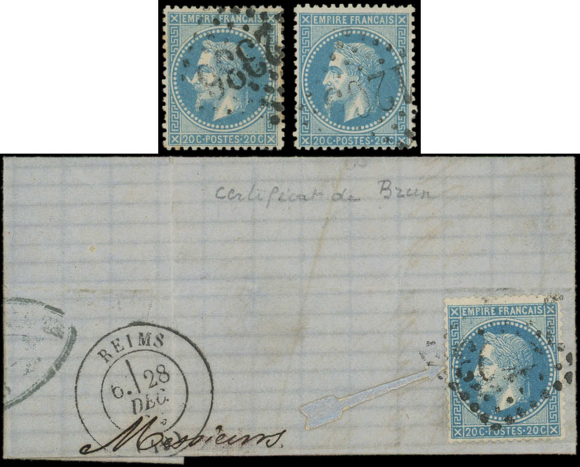 bleu et 30c. brun obl. GRILLE de CIVITA-VECCHIA s. LAC de Marseille 7/4/69, arr. ROMA 9/4, RR et TTB (Image) (Image2)