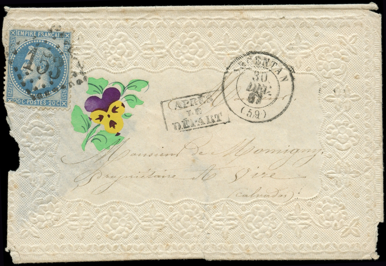 I, obl. GC 153 s. Env. VALENTINE lég. déf. à gauche mais avec sa correspondance sur papier gaufré également, càd T15 ARGENTAN 30/12/67, pièce très plaisante (Image)