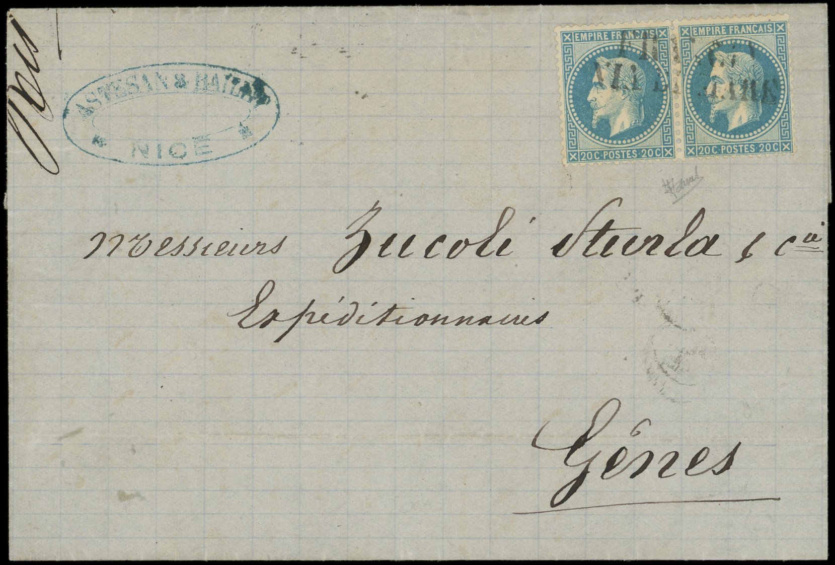 PAIRE obl. griffe FRANCIA/VIA DI MARE s. LAC de Nice 31/3/70, arr. GENOVA 2/4, Superbe (Image) (Image2)