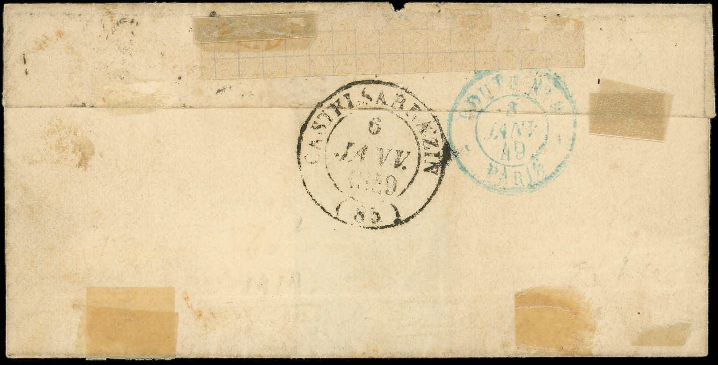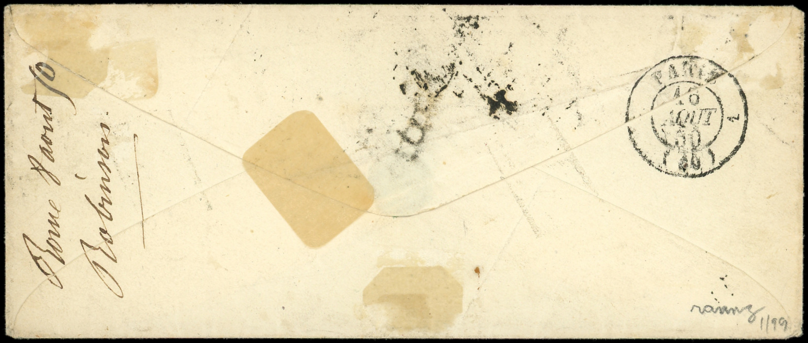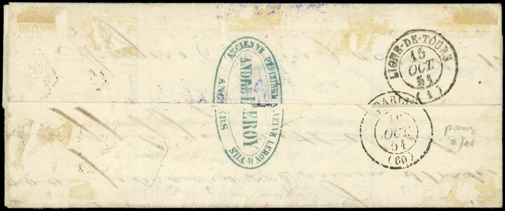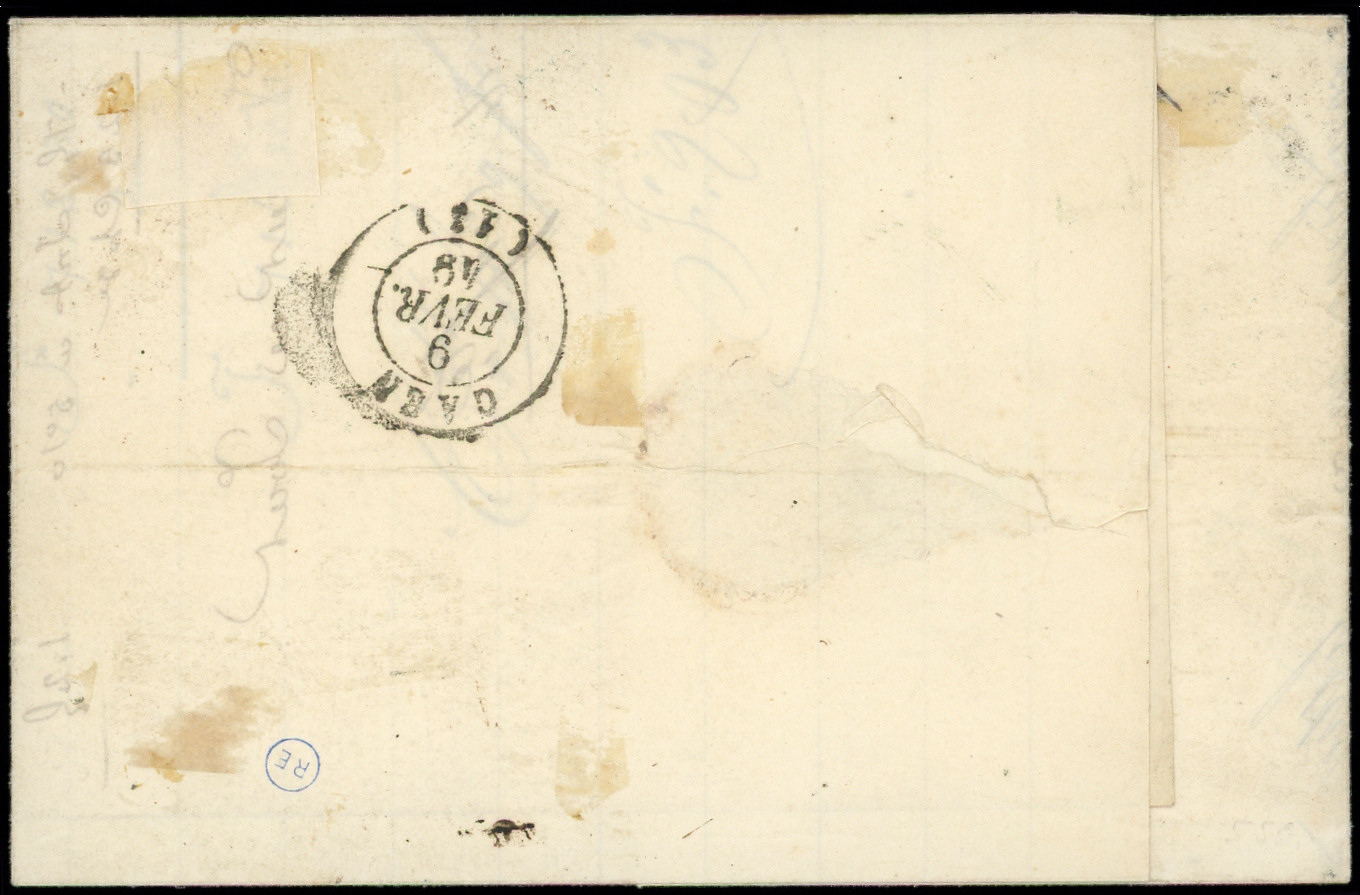 sur jaune, obl. càd T12 HUNINGUE 2 JANV 1849 répété à côté s. LSC, passage COLMAR et arr. SCHLESTADT 2/1, pièce exceptionnelle d'une grande qualité (Image) (Image2)