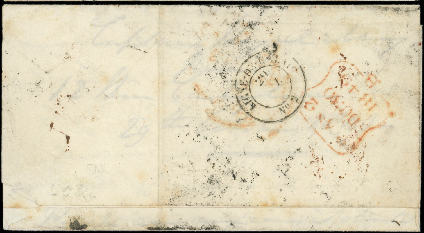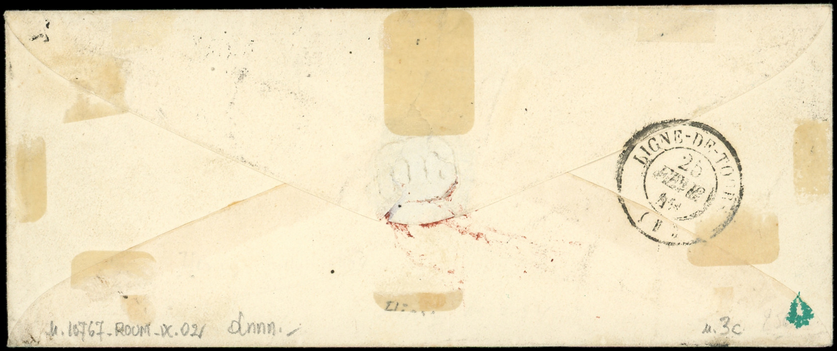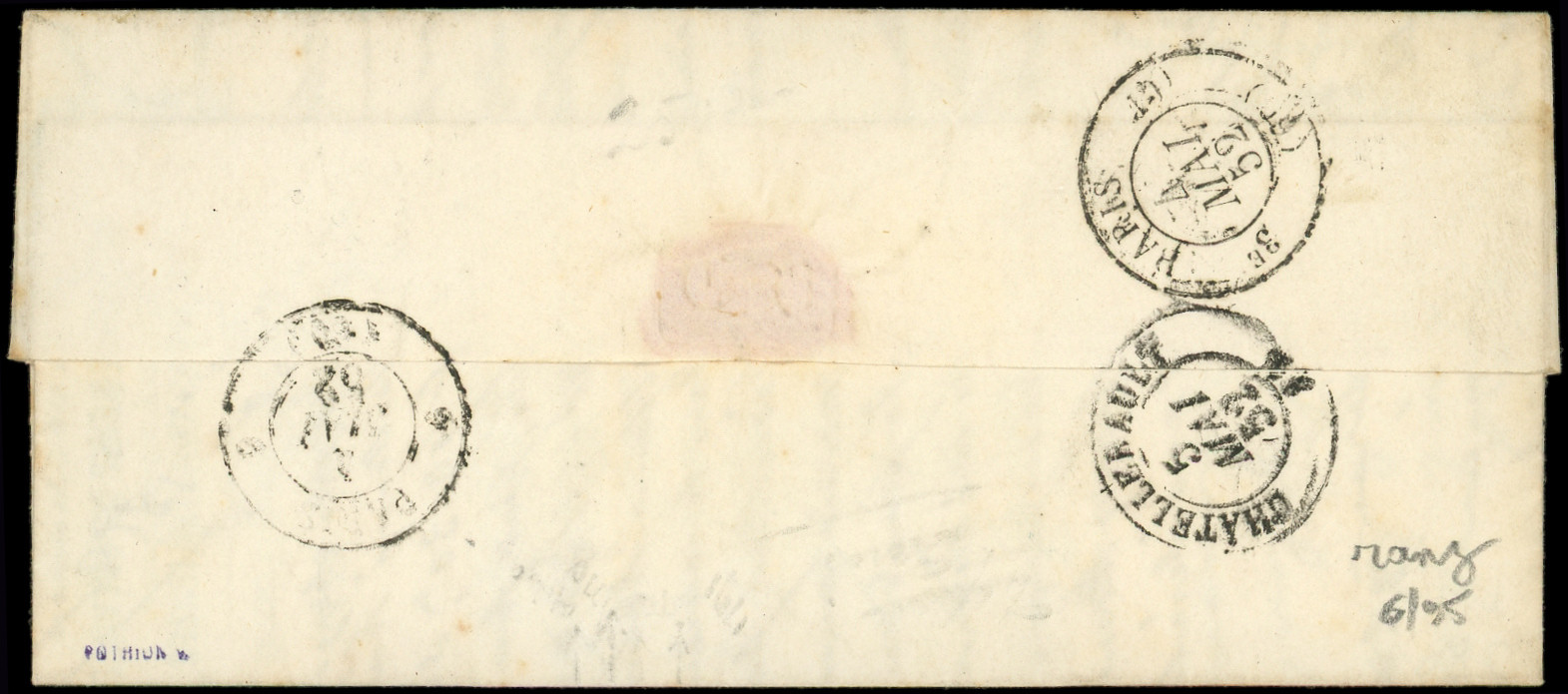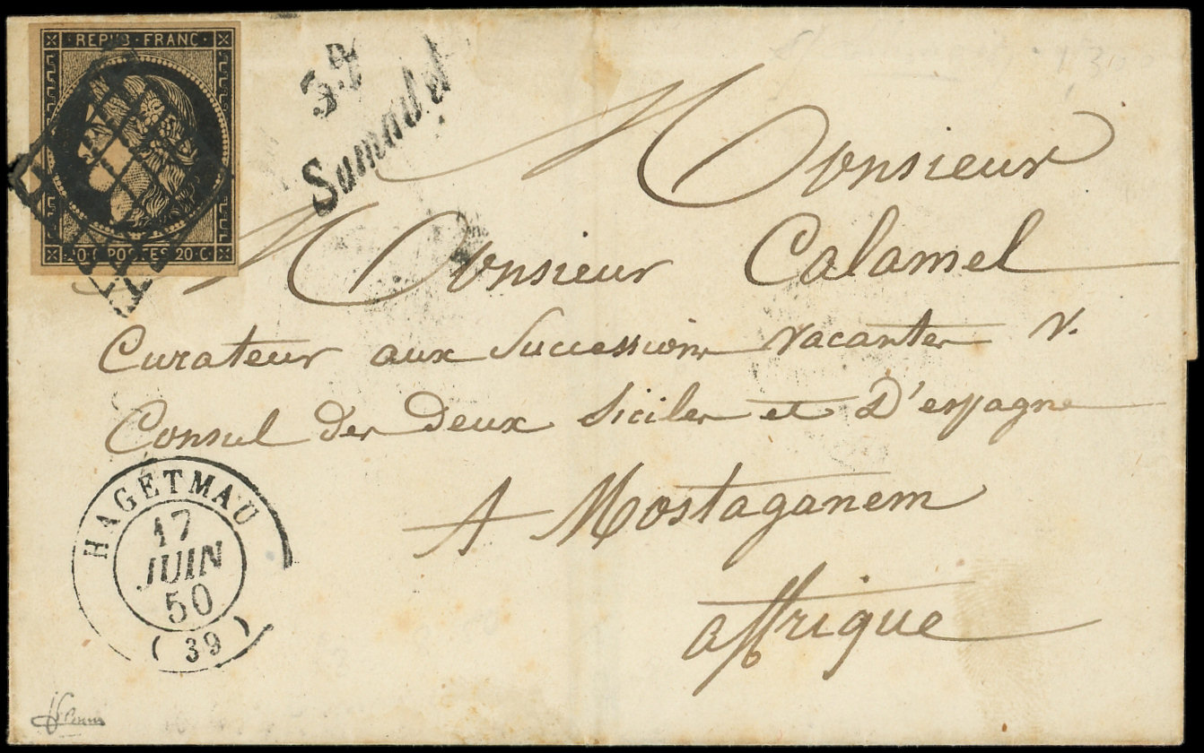 sur jaune, obl. càd T12 HUNINGUE 2 JANV 1849 répété à côté s. LSC, passage COLMAR et arr. SCHLESTADT 2/1, pièce exceptionnelle d'une grande qualité (Image) (Image2)