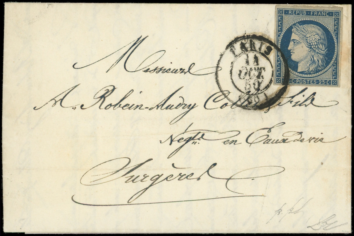 sur jaune, obl. de la BARRE NOIRE épaisse et du càd T15 de CHERBOURG 14 JANV 49, ce dernier répété à côté s. LSC, grande RARETE des oblitérations PROVISOIRES de Janvier 1849, TB, certif. Scheller (Image) (Image2)