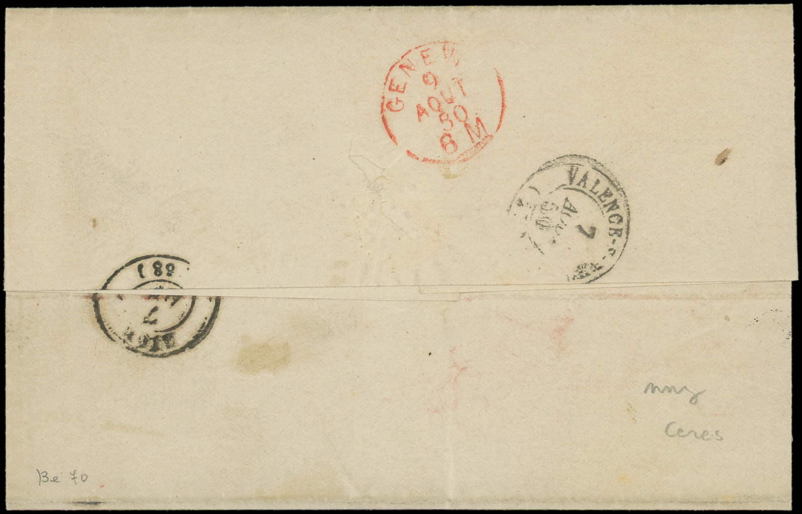 obl. GRILLE s. LSC, càd T14 St PERAY 7/8/50, TAXE 35cs en ROUGE et arr. GENEVE 9/8, TB (Image) (Image2)