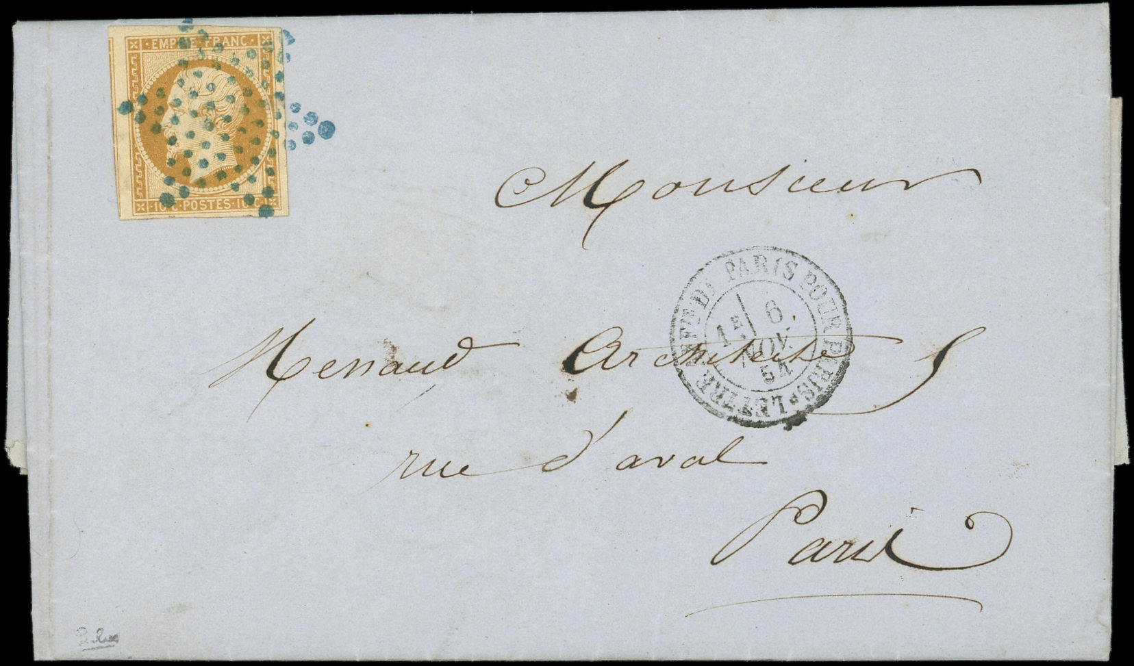 obl. ETOILE BLEUE s. LAC, càd LETTRE AFFie DE PARIS POUR PARIS 6/11/54, Superbe (Image)