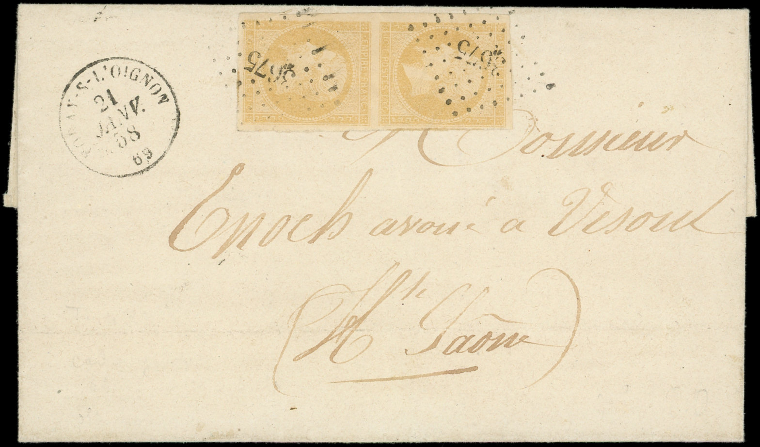 impression défectueuse, PAIRE obl. PC 3675 s. LAC, càd T15 sans cercle int. VORAY-S-L'OIGNON 21/1/58, TTB (Image)