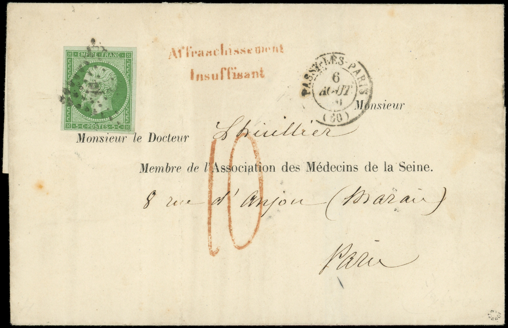obl. s. LSC, càd T15 PASSY les PARIS 6/8/60, "affrt insuff." et RR Taxe 10 au tampon, arr. càd bleu 6 PARIS 6 6/8, TTB (Image) (Image2)