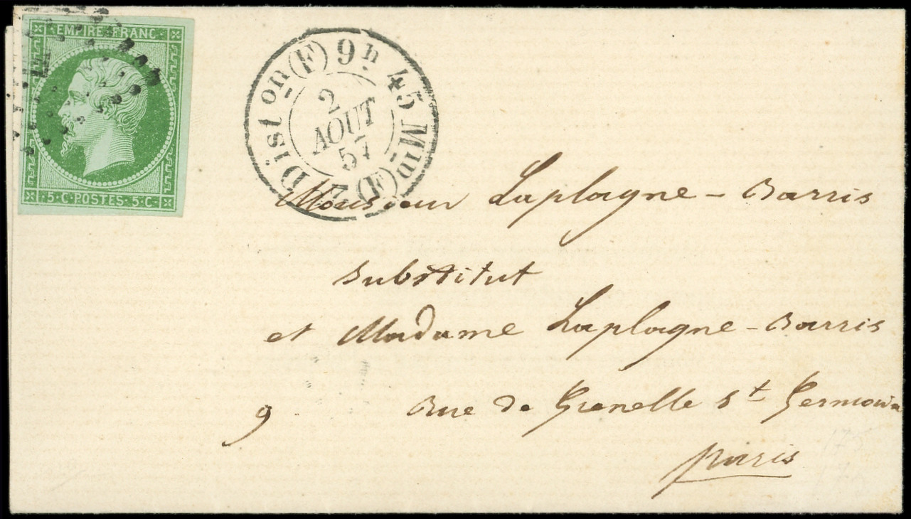 marges énormes, obl. Los. s. Faire-part de naissance, càd 2e Diston (F) 9h.45 Min. (F) 2/8/57, Superbe (Image)