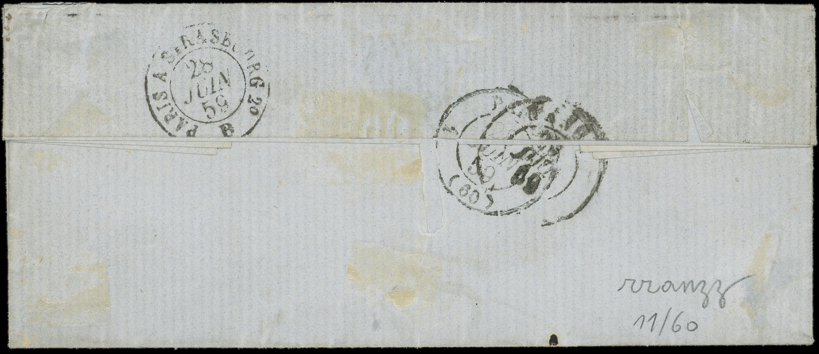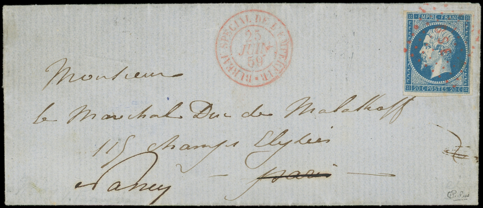 I, obl. Los. BSE s. LAC de Cavriana, càd BUREAU SPECIAL DE L'EMPEREUR 25/6/59, le tout en ROUGE, arr. Paris, Superbe (Image) (Image2)